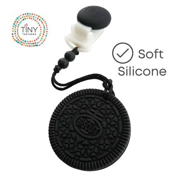 Tiny Teethers Silicone Cookie Teether and Clip, Black and White Cookie Teether