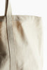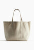 Spacious beach bag in thick cotton canvas. Handles at top and a small inner compartment with zipper. Unlined.
