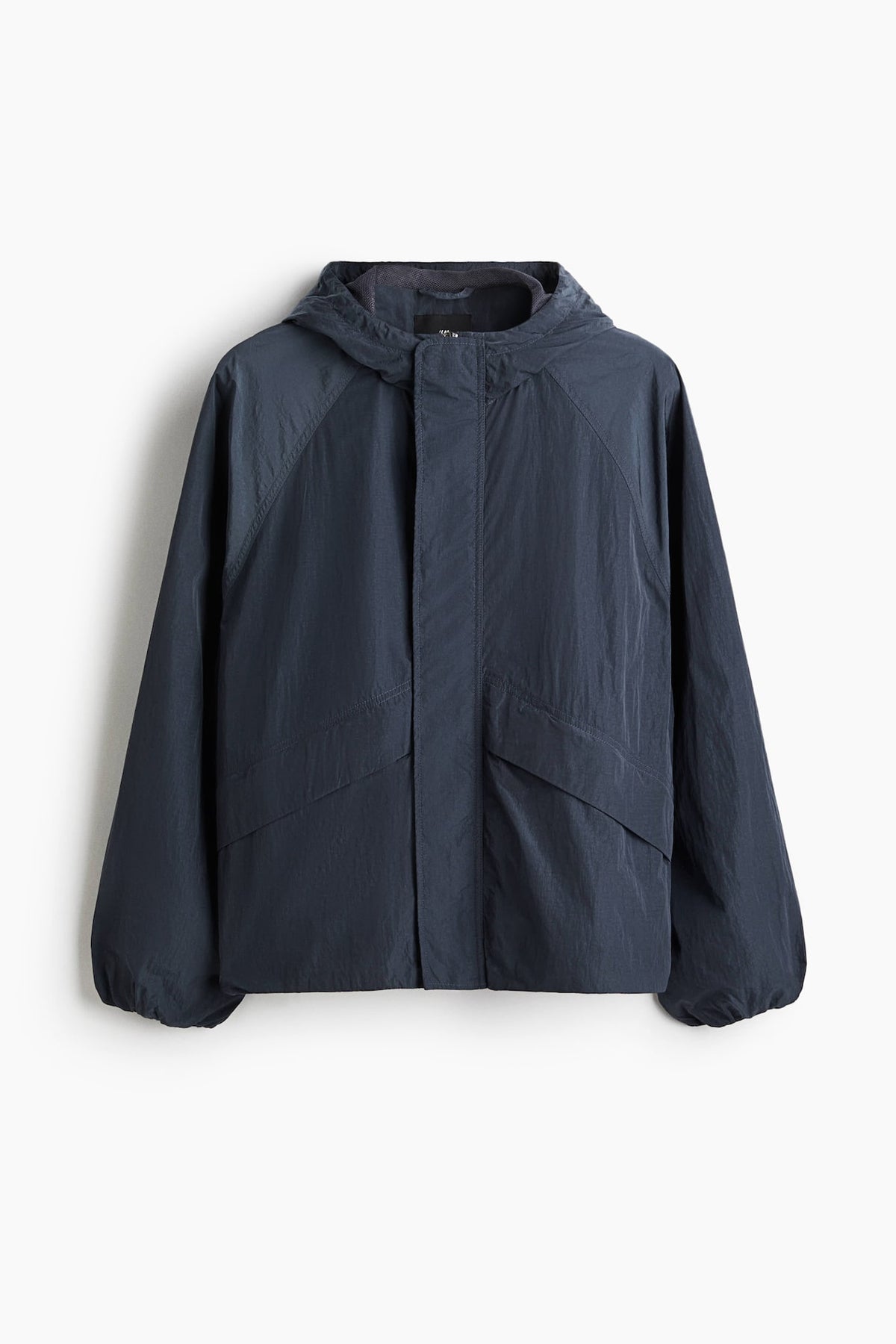 Regular-fit windbreaker in crisp nylon with a comfortable, classic silhouette. Hood with a concealed, elasticized drawstring. Zipper at front, wind flap with concealed snap fasteners, and front pockets with flap and zipper. Metal eyelets under arms, long raglan sleeves, and covered elastic at cuffs. Concealed, elasticized drawstring at hem. Lined.