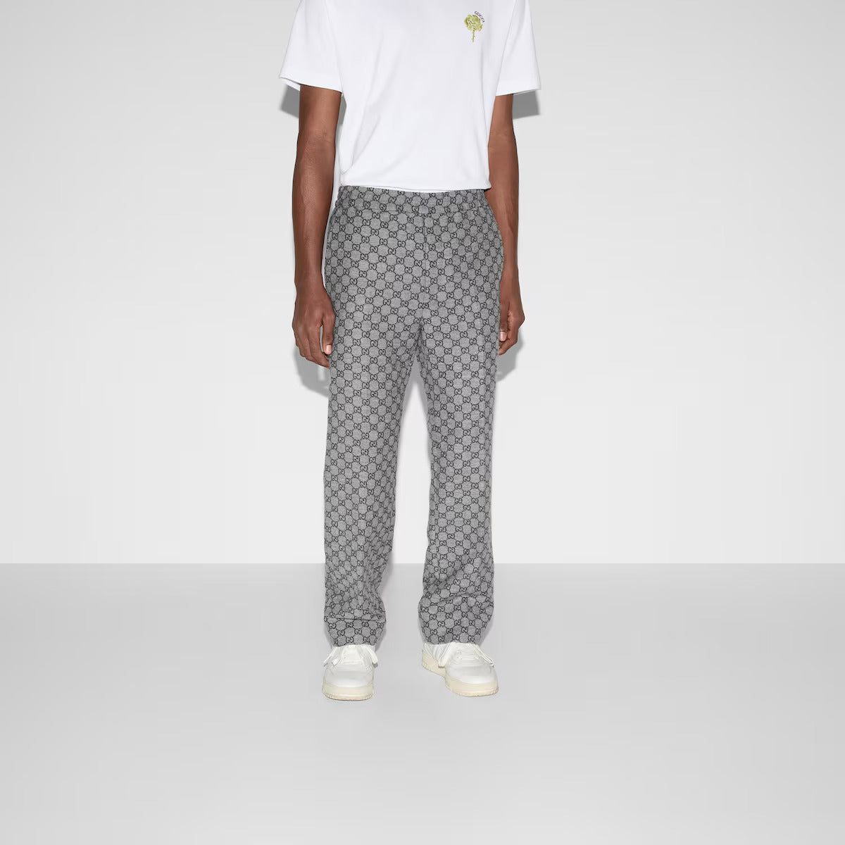 Taking inspiration from founder Guccio Gucci's monogram, the GG motif continues to be a firm favorite of the House. This straight-legged pant is presented in brushed GG flannel and finished with an elastic waistband with drawstring.