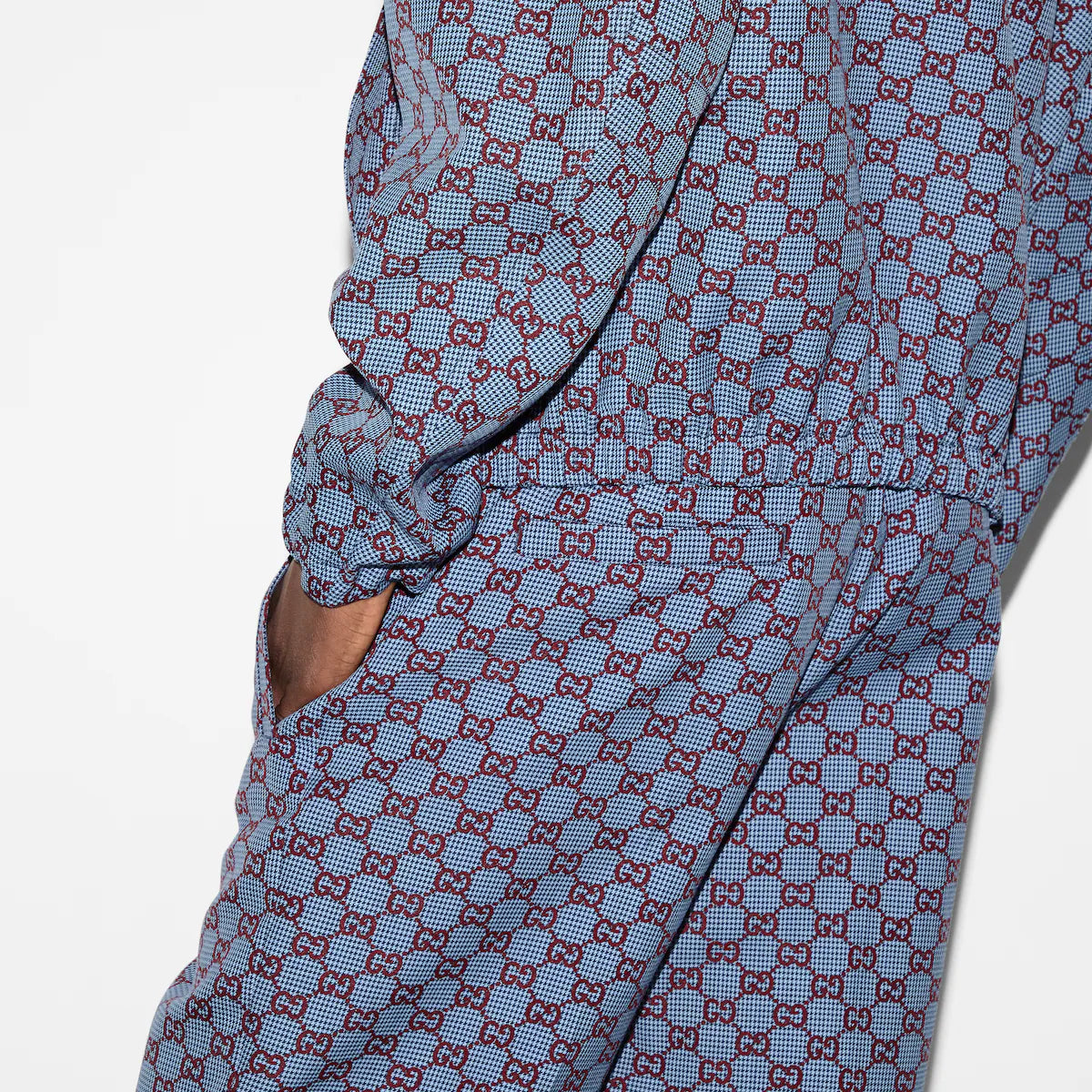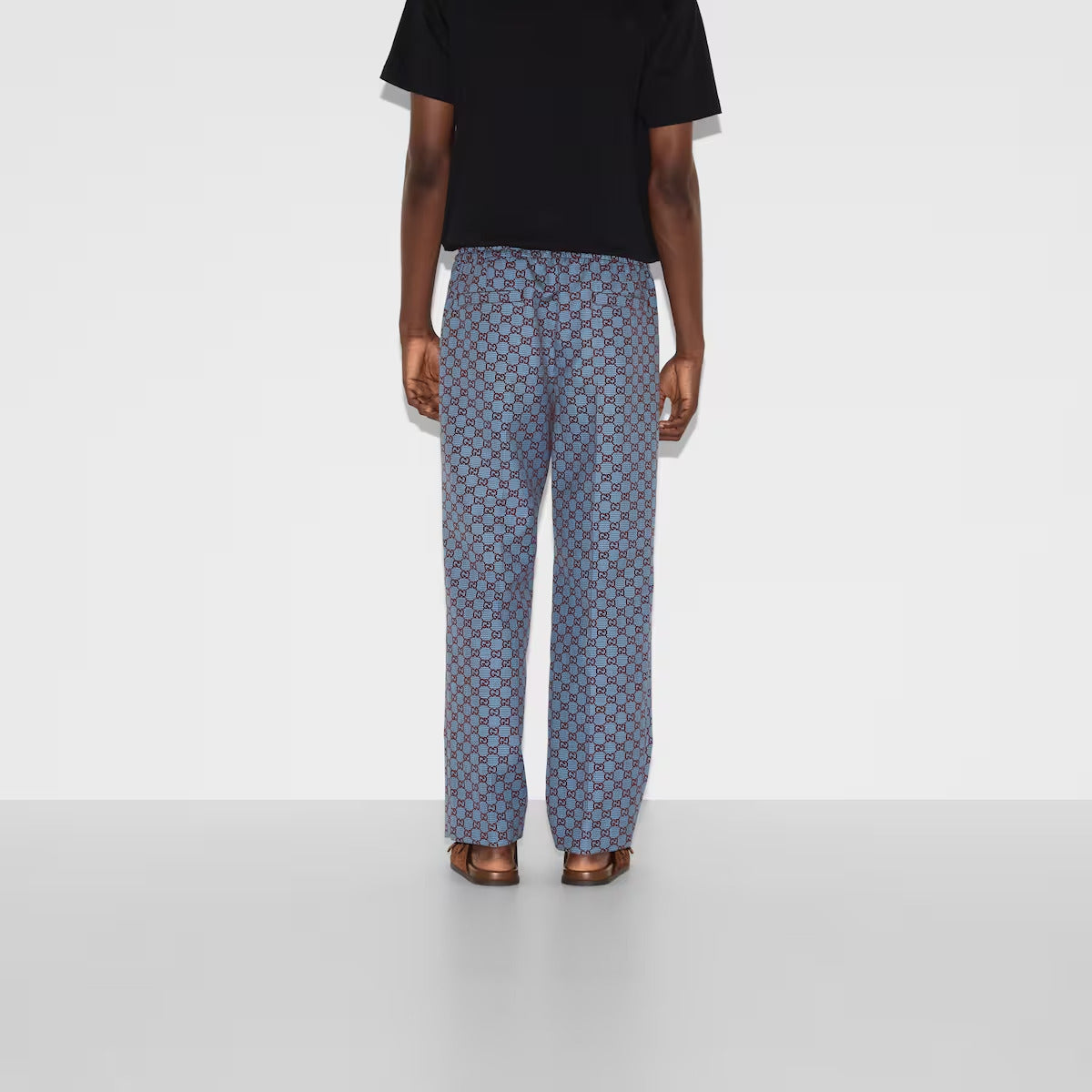 The GG monogram reinterprets the House’s history of elegance and craftsmanship. These leisure pants are stated in a GG pied-de-poule wool and completed with an elastic waistband with internal drawstring closure.