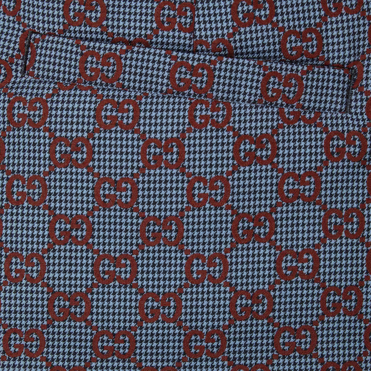 - Light blue and bordeaux GG pied-de-poule wool