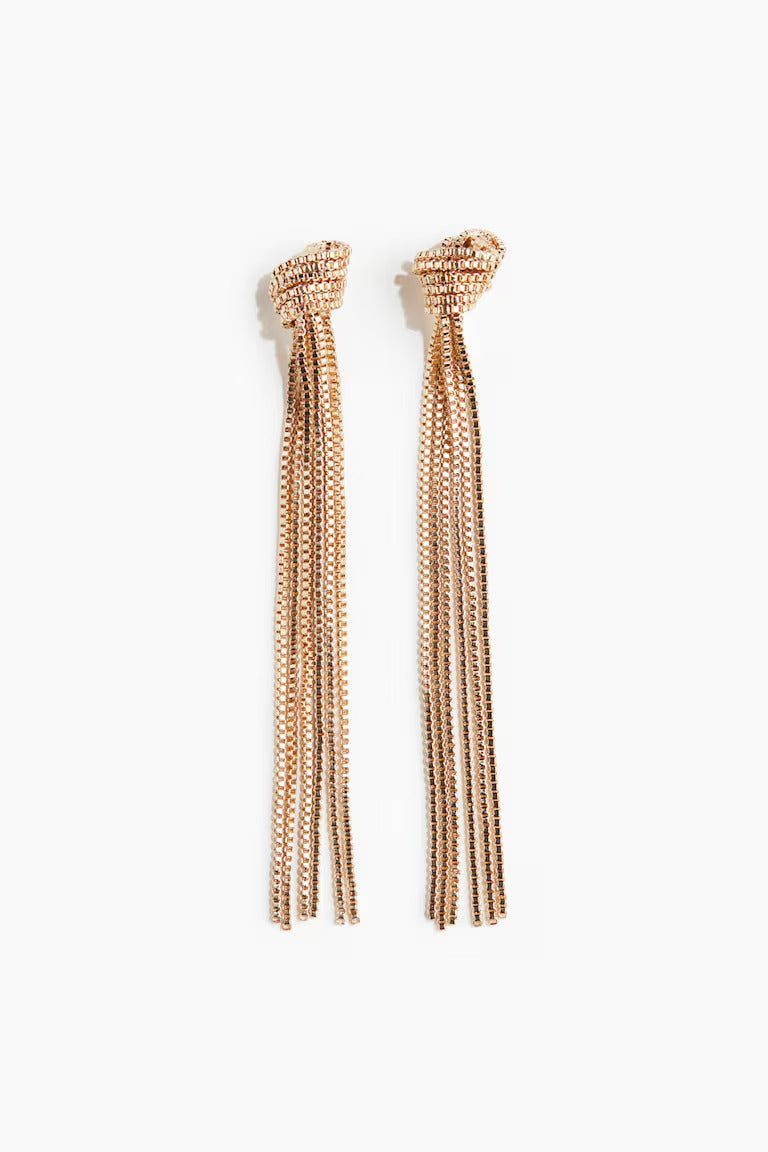 Tasseled earrings made of multiple box chains connected with a knot. Length approx. 6 in.