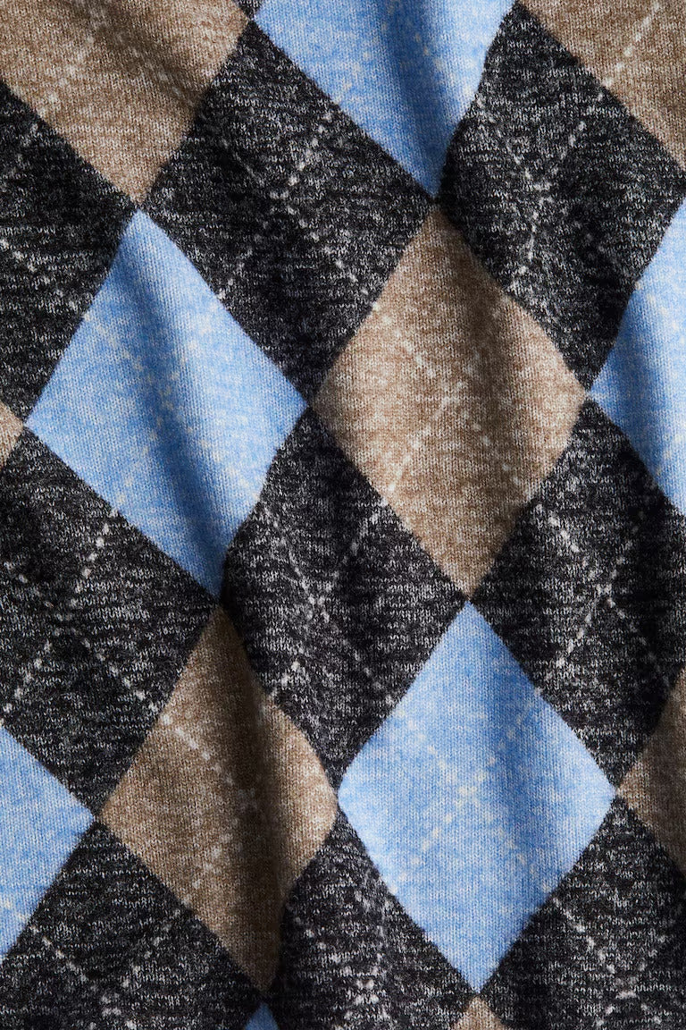 Description:Dark gray melange/beige melange/blue melange/cream, Argyle-patterned