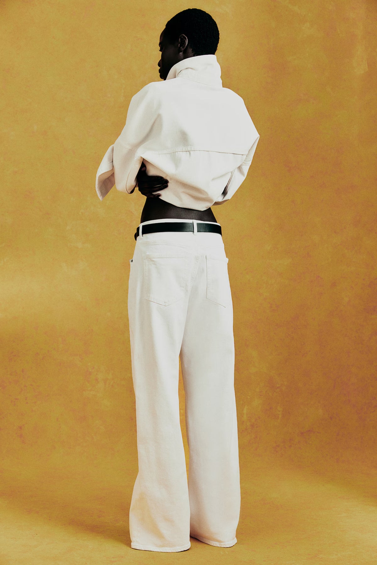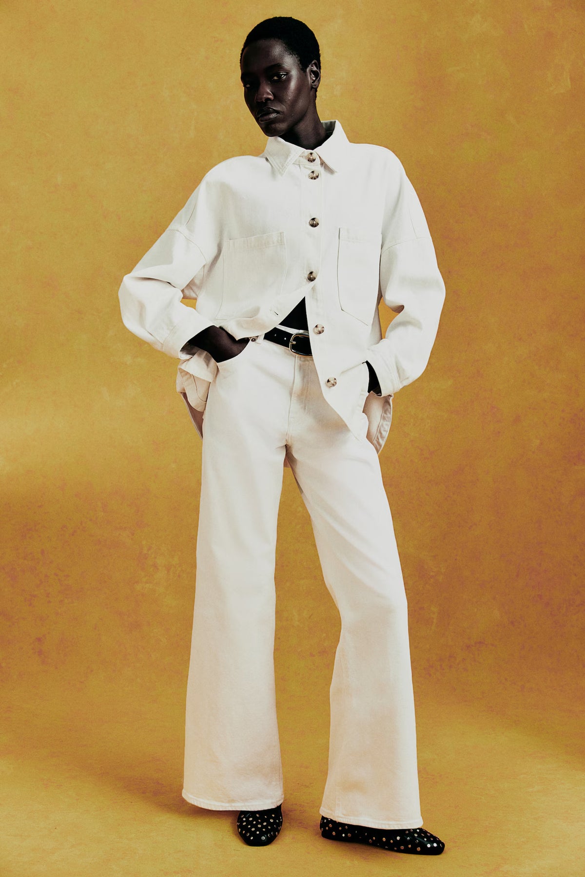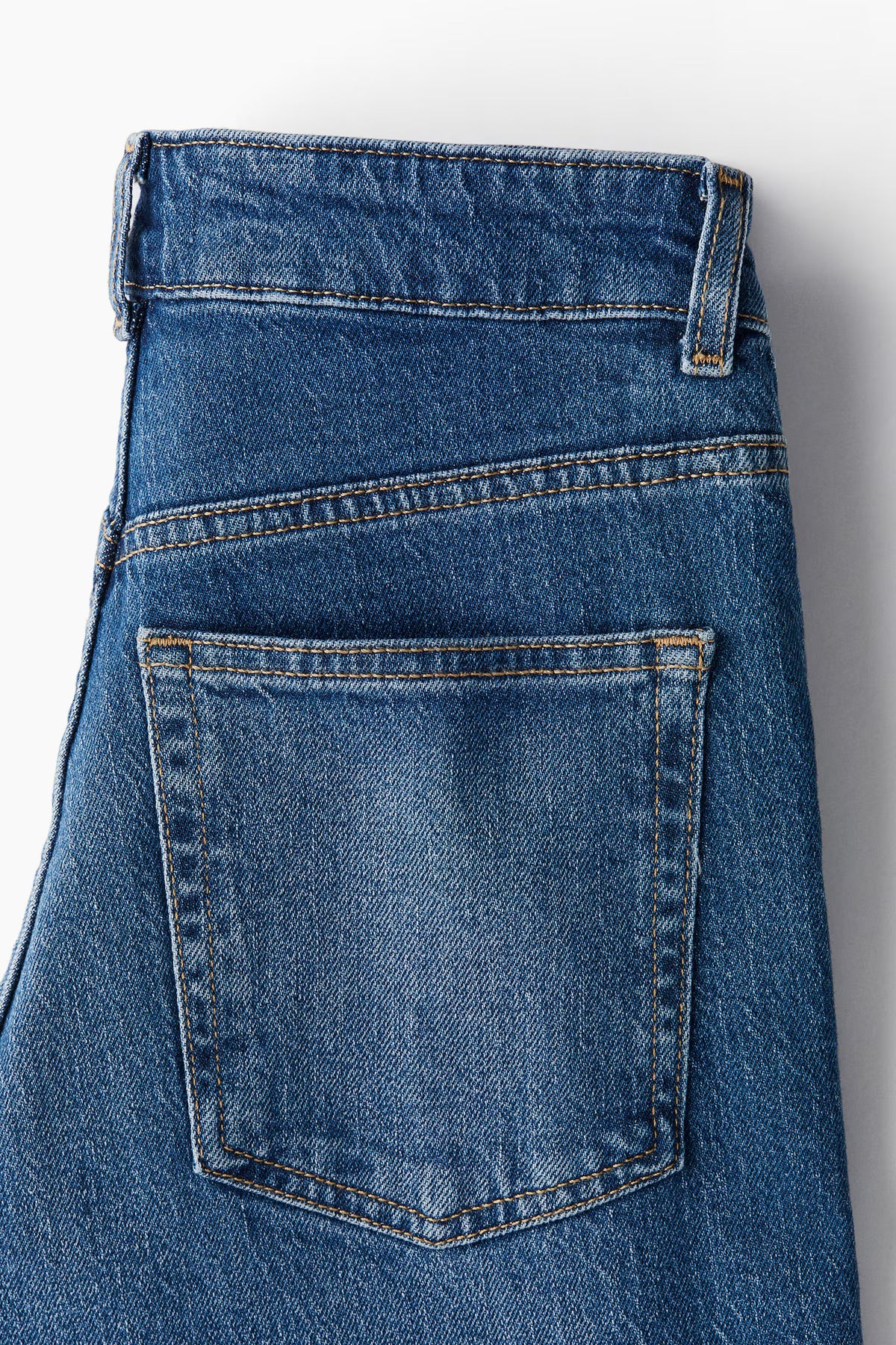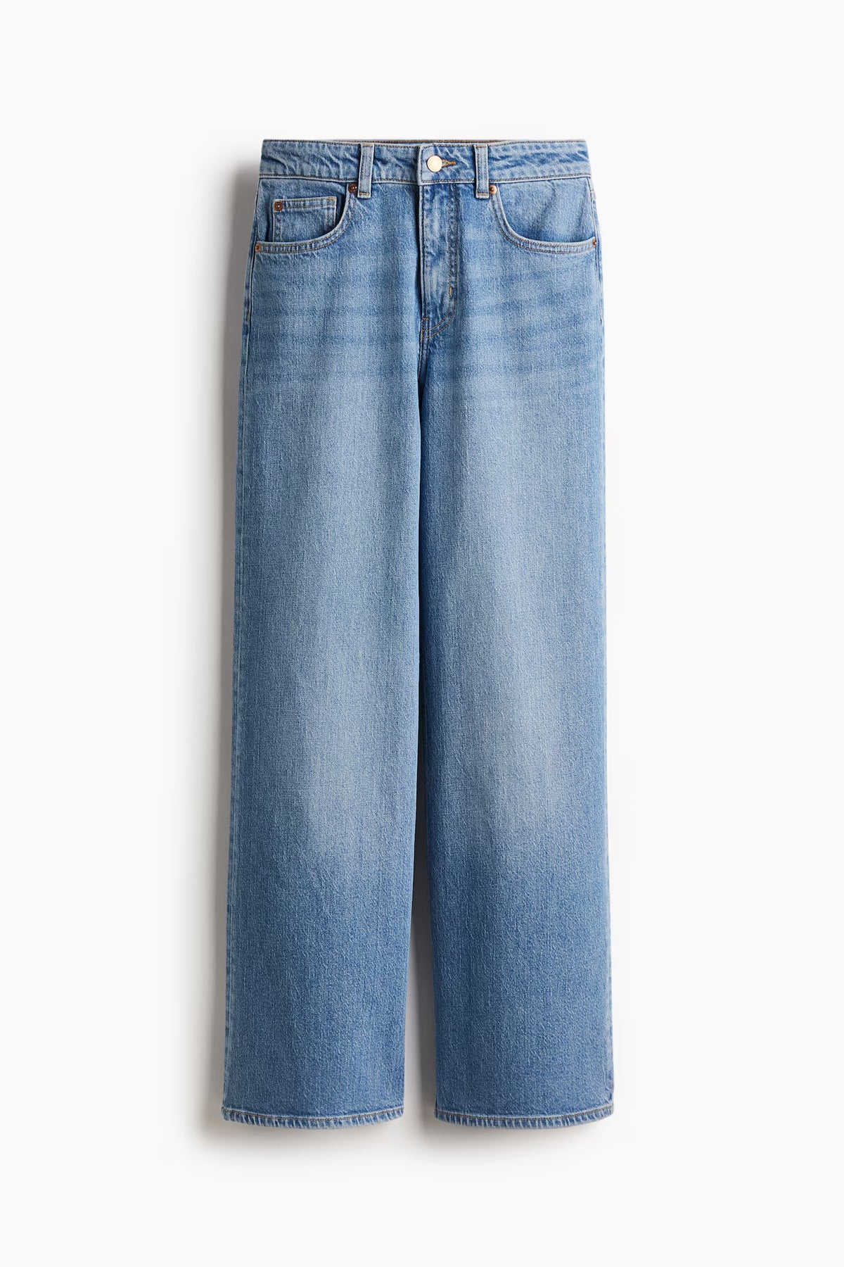 5-pocket jeans in washed cotton denim. High waist, zip fly and button and straight, wide legs.