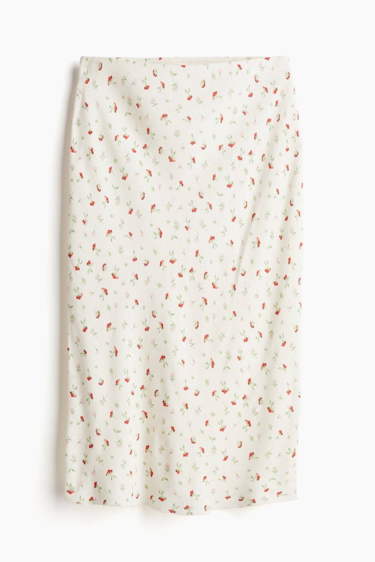 Knee-length skirt in woven fabric. Concealed, elasticized waistband and an overlocked hem. Unlined.