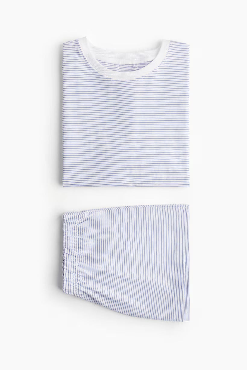 Pajama T-shirt and shorts in soft, ribbed jersey. T-shirt with a round neckline and dropped shoulders. Shorts with covered elastic at waistband.