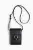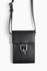 Small crossbody bag in coated fabric. Adjustable shoulder strap, flap with a decorative metal buckle and concealed snap fastener, and an open inner compartment. Lined.