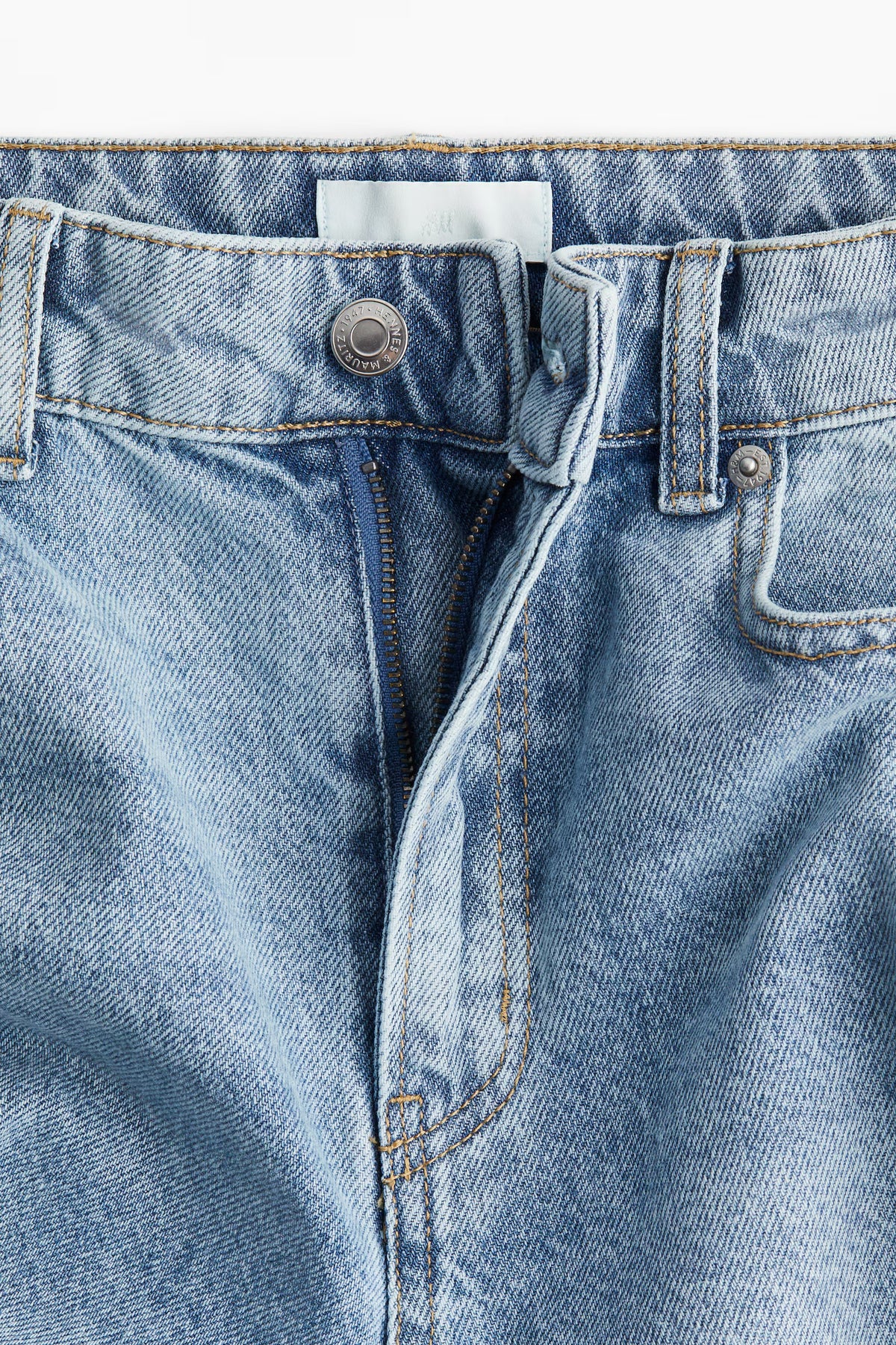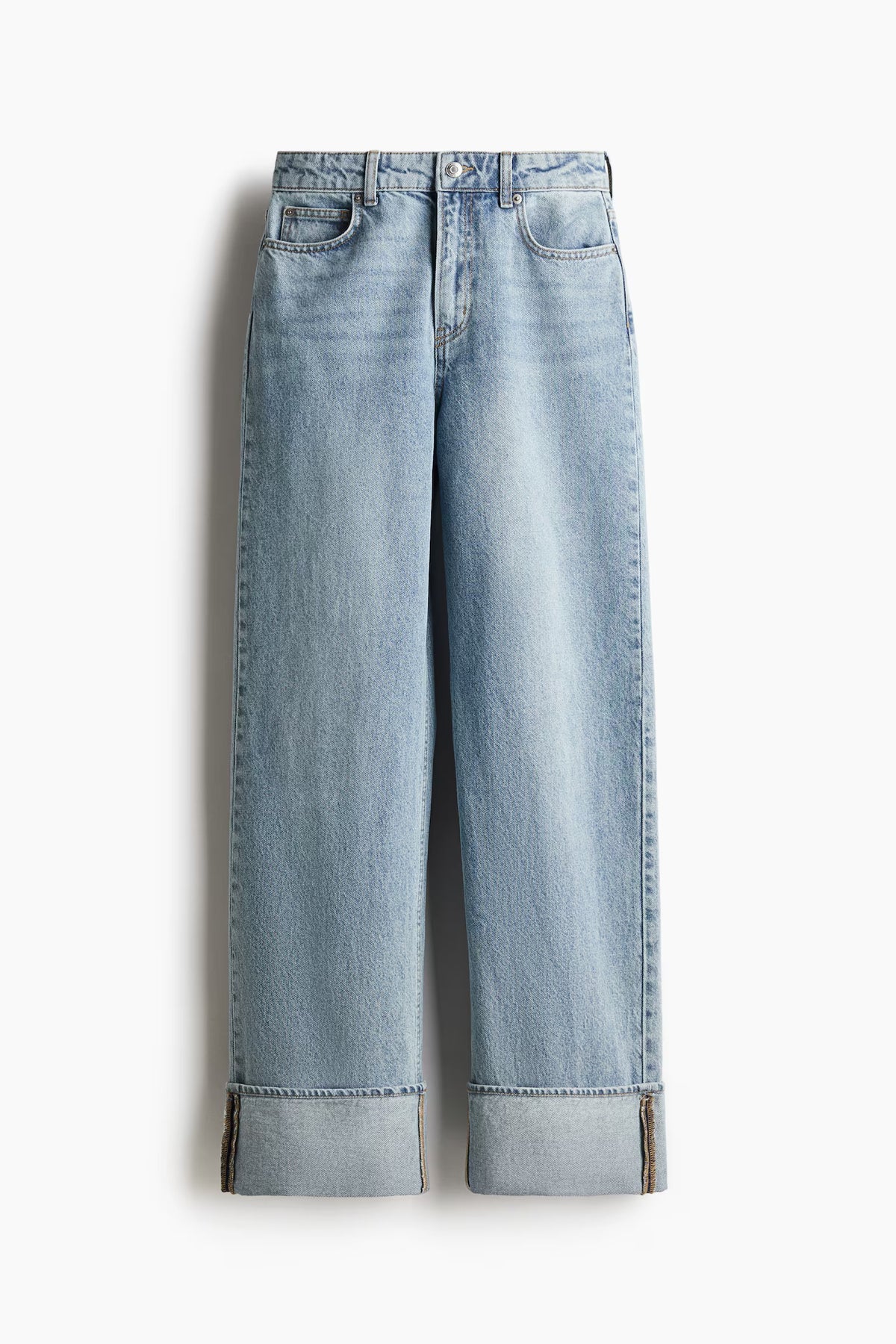 5-pocket jeans in cotton denim. High waist, zip fly with button, and straight legs with wide, foldover cuffs.