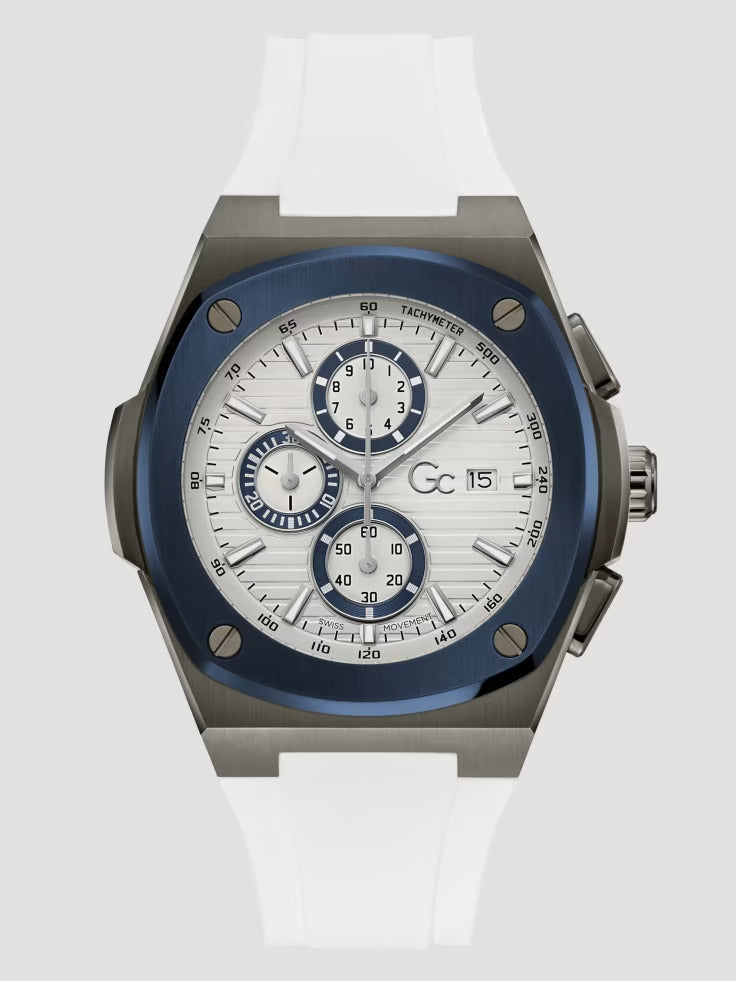 Guess Gc Silver and Green-Tone Metal Chronograph Watch