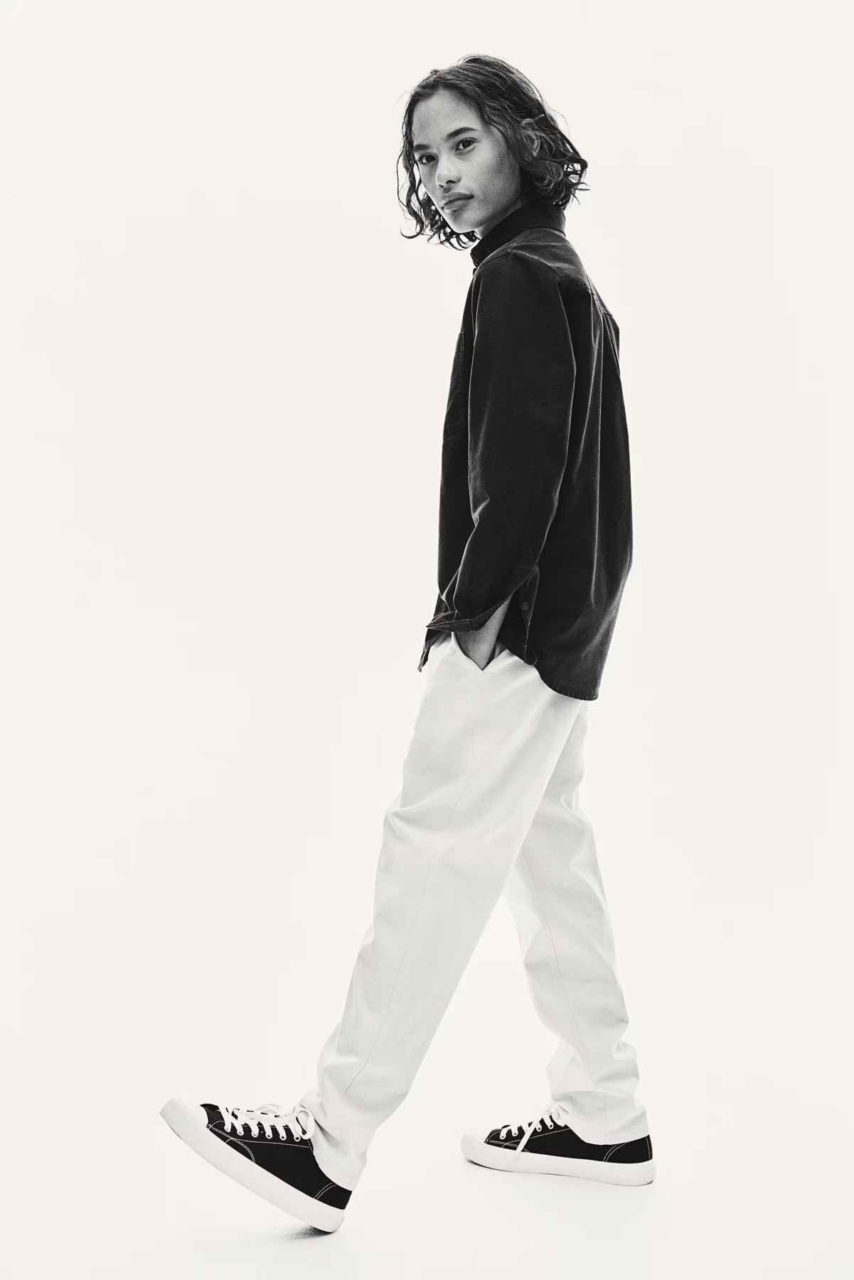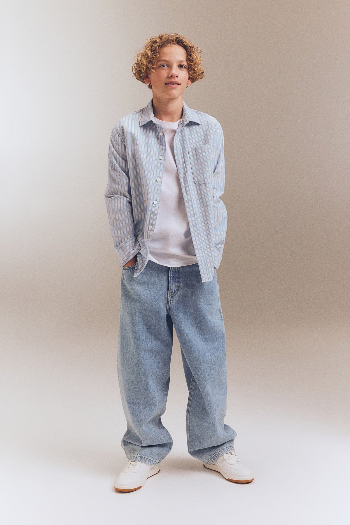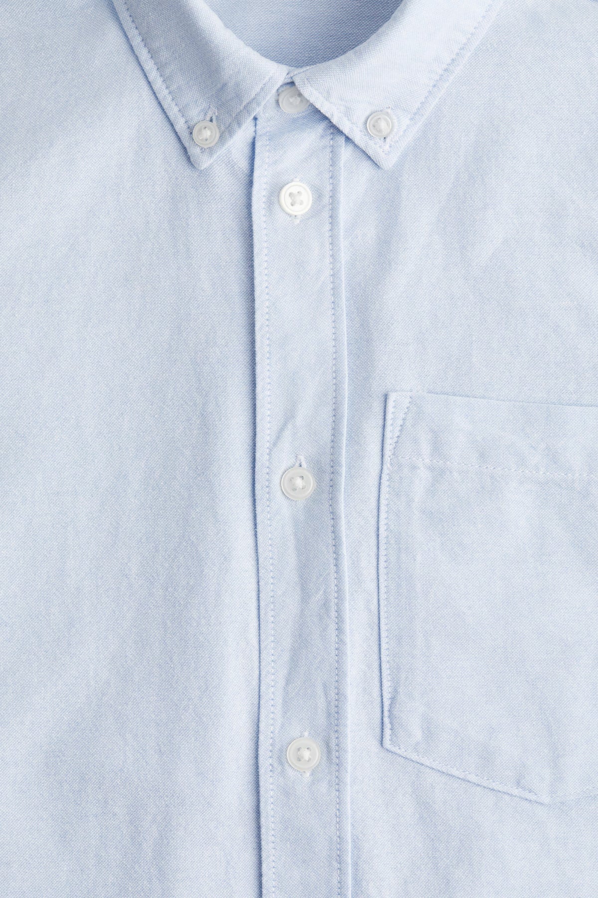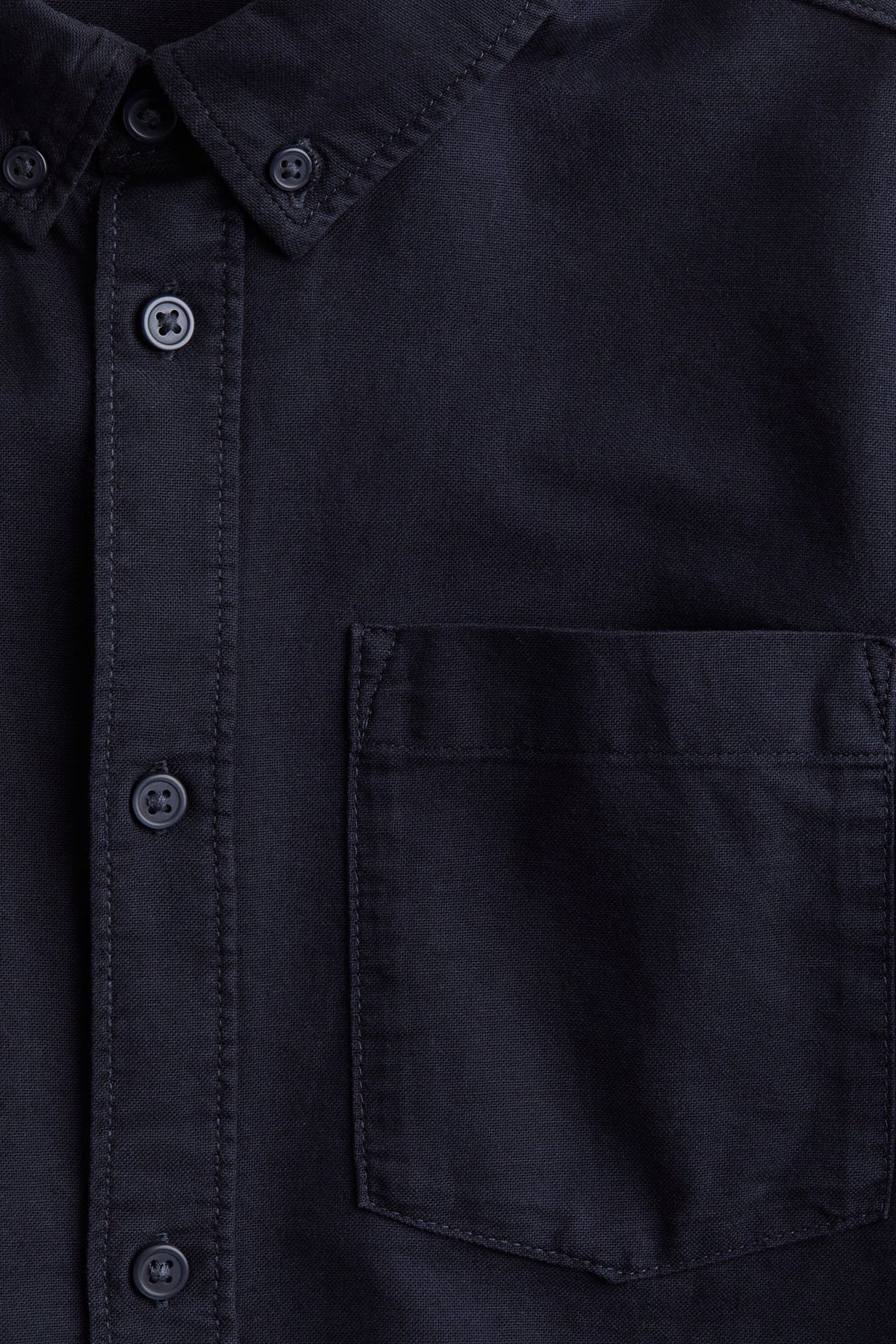 Shirt in soft woven cotton fabric. Button-down collar, buttons at front and at cuffs, and an open chest pocket. Slightly rounded hem.