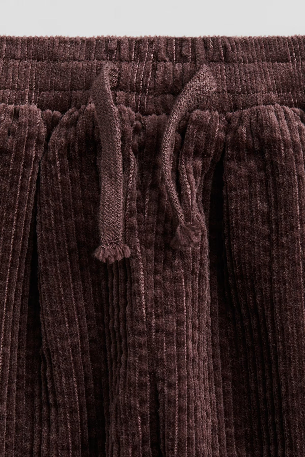 H&M Adorables. Easy pull-on joggers in soft corduroy made from high-quality cotton. Relaxed fit through hip, thigh, and leg. Drawstring and covered elastic at waistband. Open back pocket. The H&M Adorables collection is a curated selection of high-comfort, quality pieces with a timeless appeal.