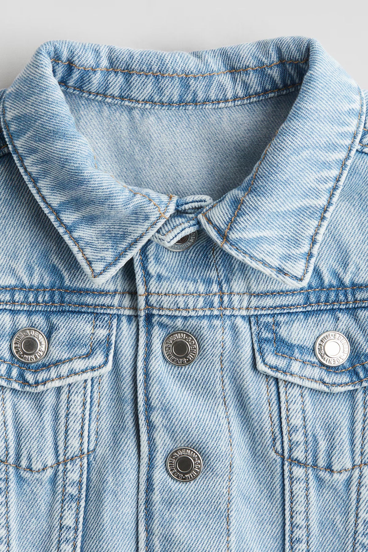 Jacket in soft cotton denim. Turn-down collar, snap fasteners at front, and mock chest pockets with flap and decorative snap fasteners. Dropped shoulders and snap fastener at cuffs.