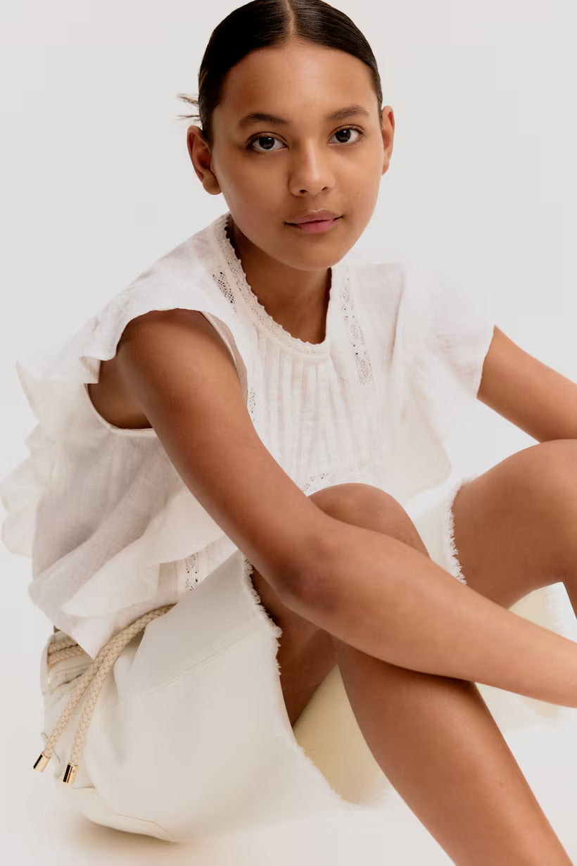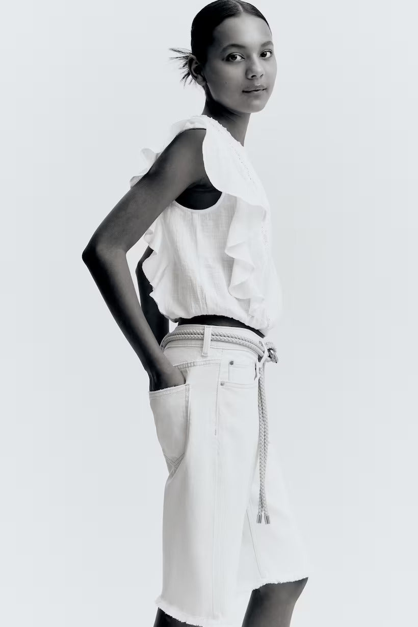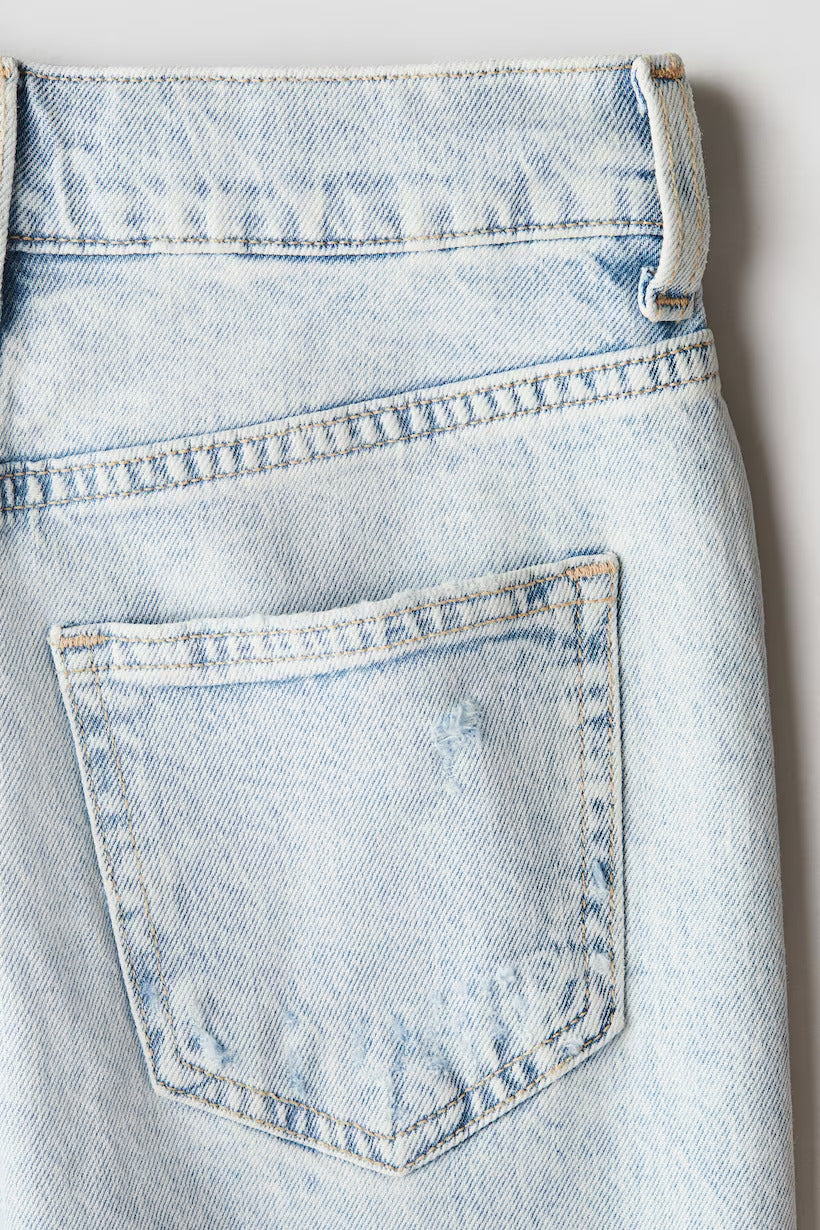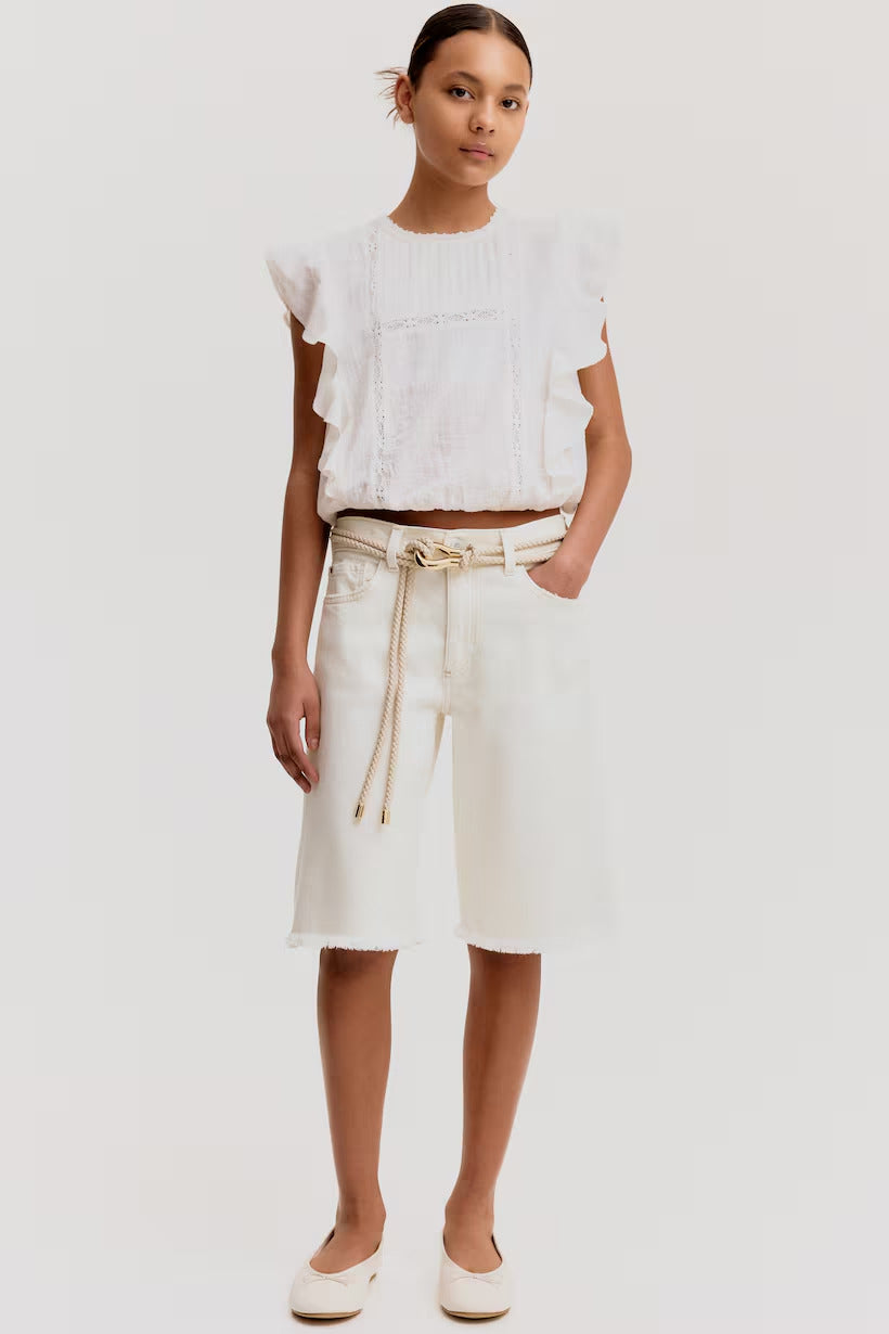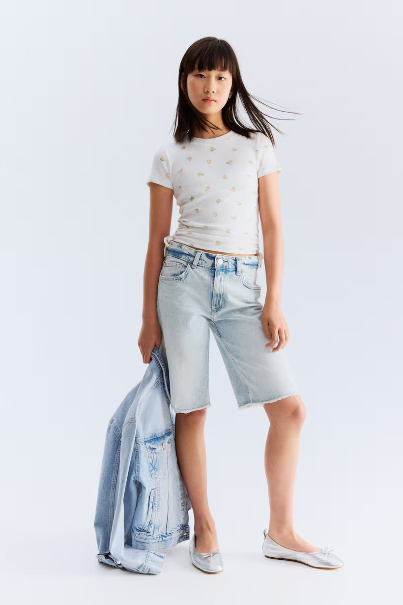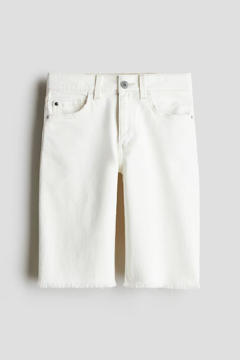 Loose-fit, 5-pocket shorts in soft cotton denim. Adjustable, elasticized waistband and zip fly with button.