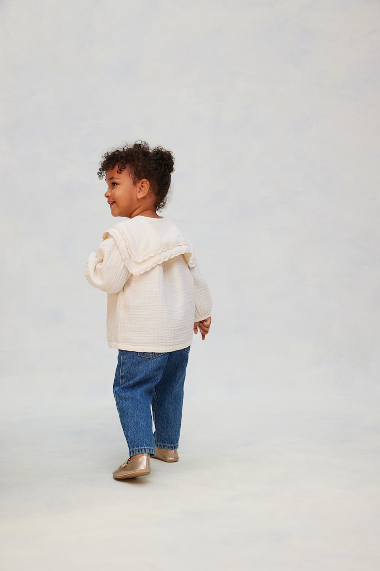 H&M Adorables. Blouse in soft muslin made from high-quality cotton. Large, lace-trimmed sailor collar, buttons at front, dropped shoulders, long puff sleeves, and cuffs with narrow elastic. The H&M Adorables collection is a curated selection of high-comfort, quality pieces with a timeless appeal.