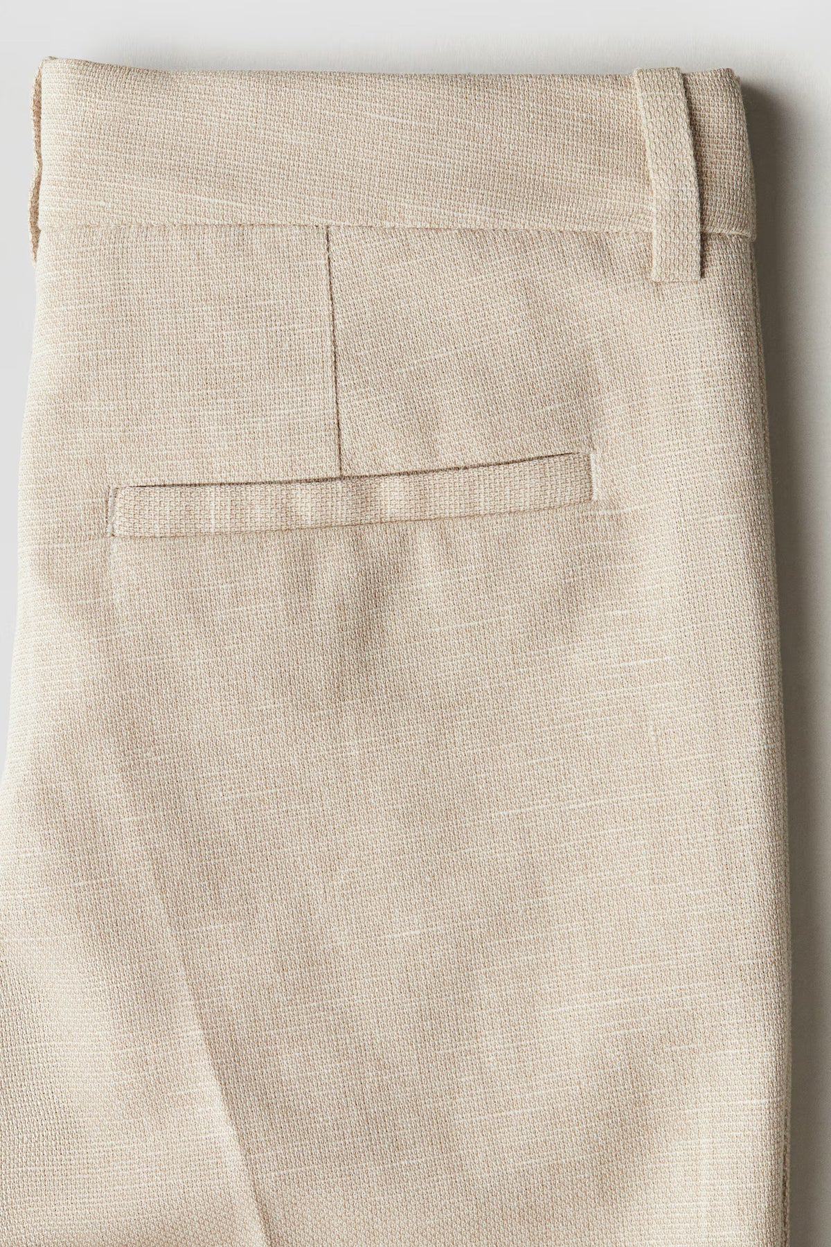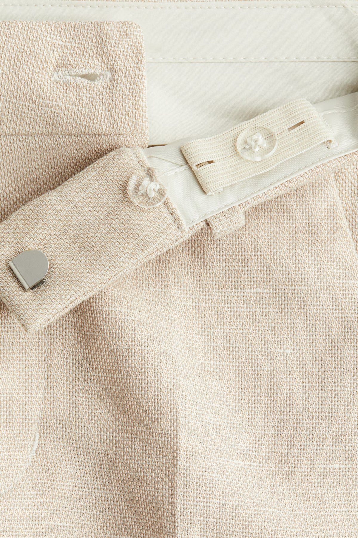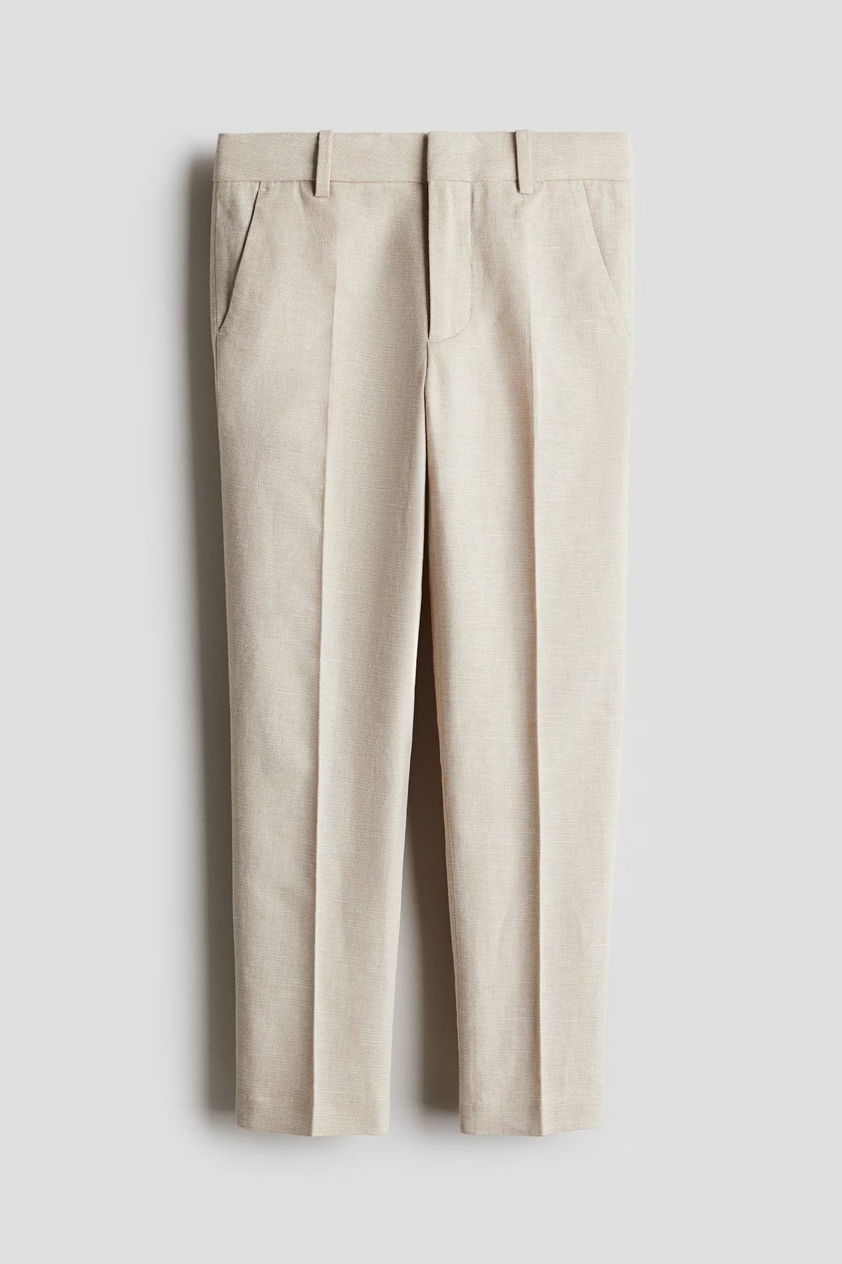 Suit pants in an airy, woven linen and cotton blend. Adjustable, elasticized waistband and zip fly with concealed hook-and-eye fastening. Side pockets, welt back pockets, and tapered legs with creases.