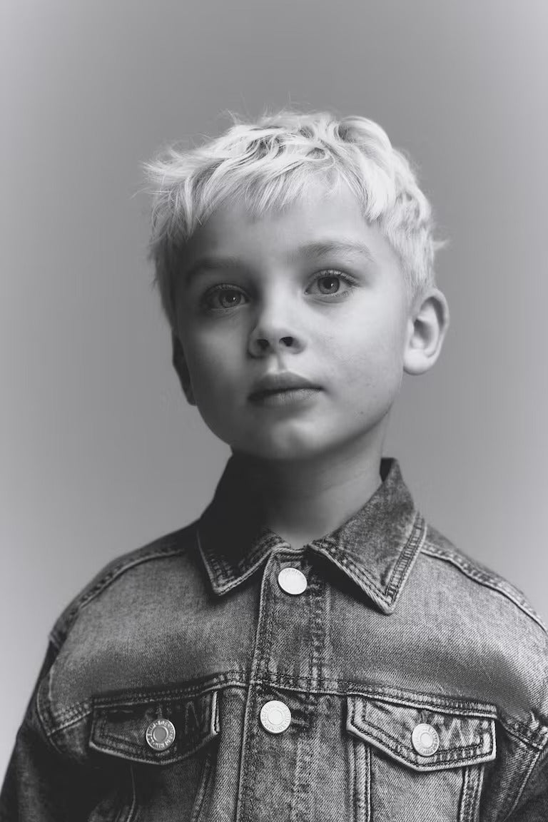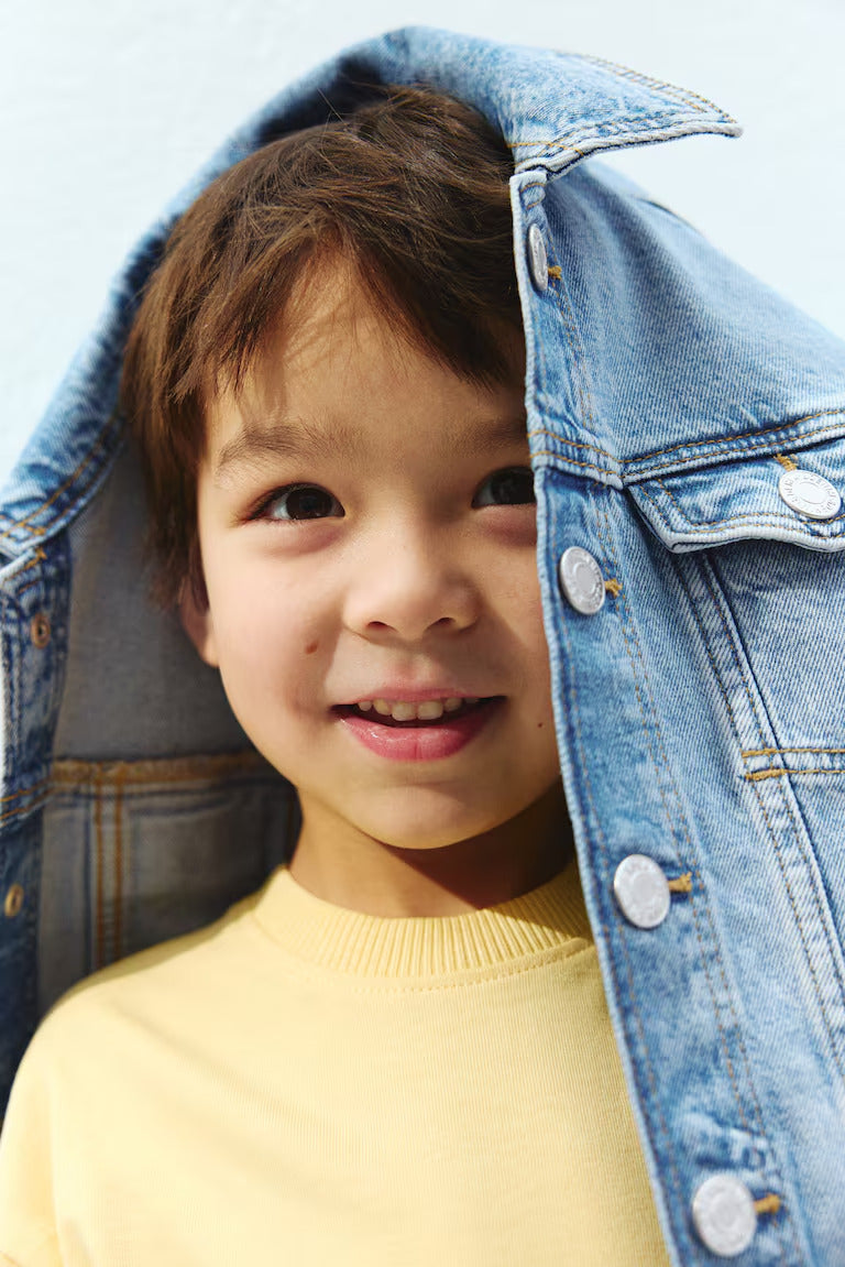 Loose-fit jacket in cotton denim. Collar, buttons at front, and a yoke at front and back. Chest pockets with flap and snap fastener, welt front pockets, dropped shoulders, and long sleeves with snap fasteners at cuffs.