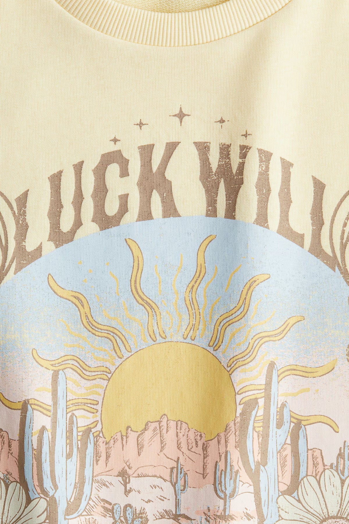 Oversized sweatshirt in lightweight fabric. Round neckline, dropped shoulders, and ribbing at neckline, cuffs, and hem. Longer hem at back with slit at sides.
