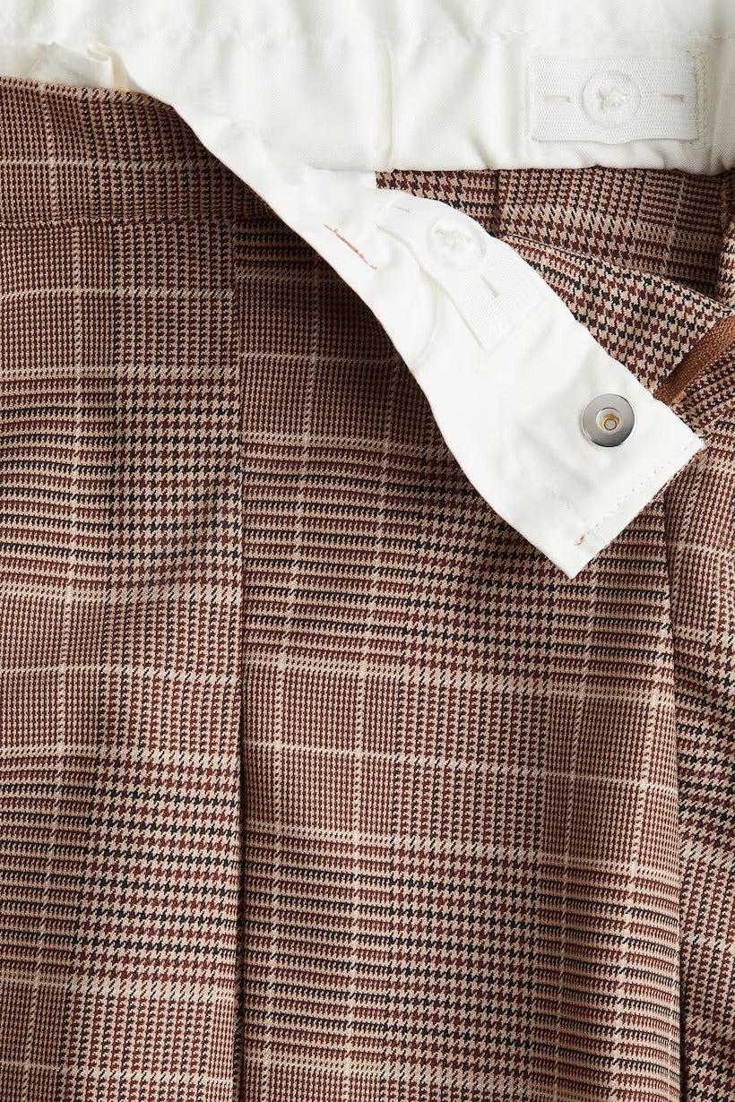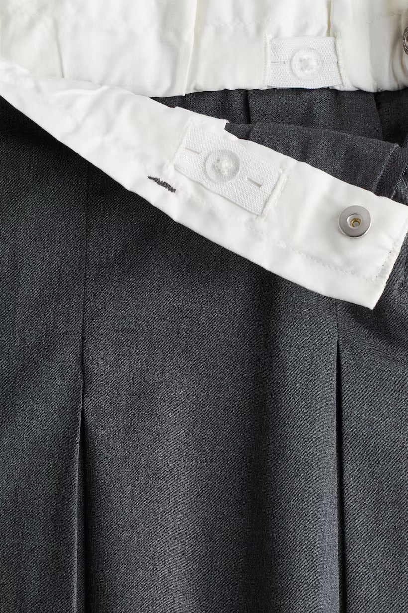 Pleated skirt in soft twill with decorative trim at top. Adjustable, elasticized waistband and concealed zipper at one side with snap fastener.