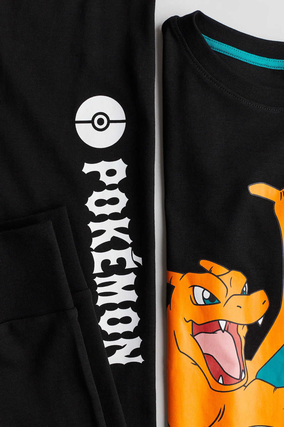 Pajamas in soft cotton jersey with a printed design. Shirt with a round, ribbed neck and long sleeves with wide cuffs. Pants with an elasticized waistband and cuff at hems.