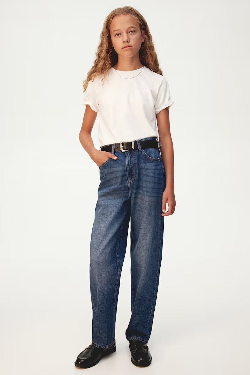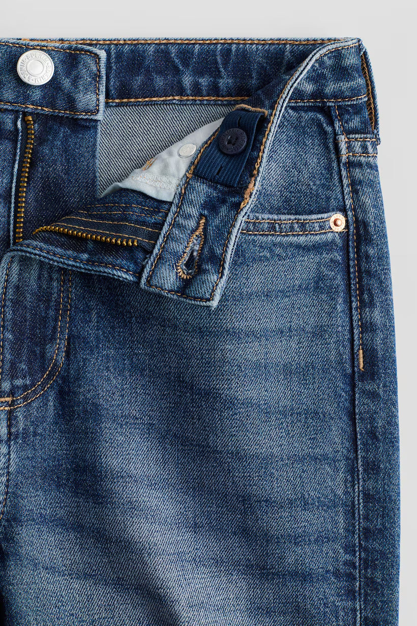 5-pocket jeans in soft, stretchy denim. Relaxed fit through hip, thigh, and leg. Adjustable, elasticized waistband and zip fly with button.