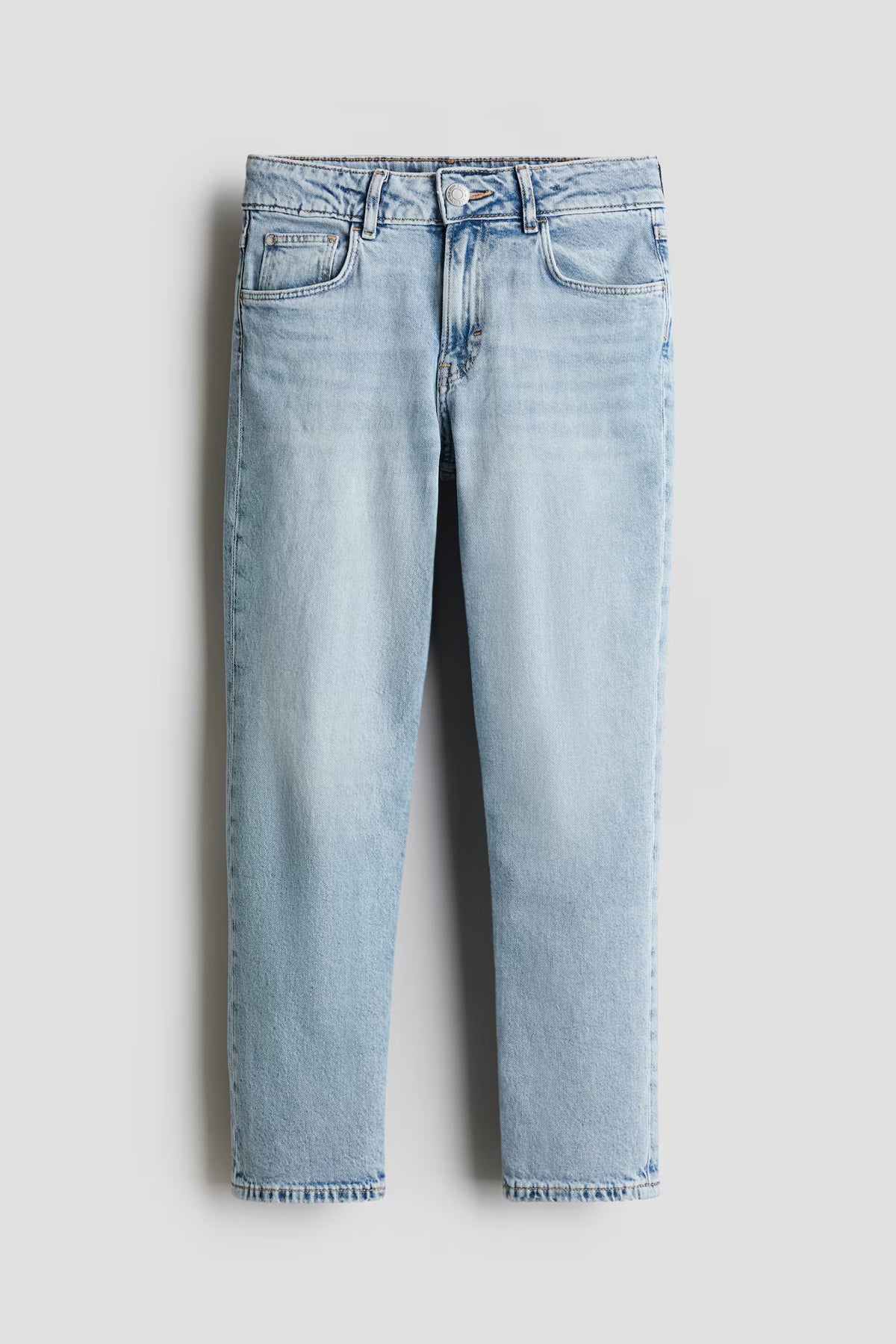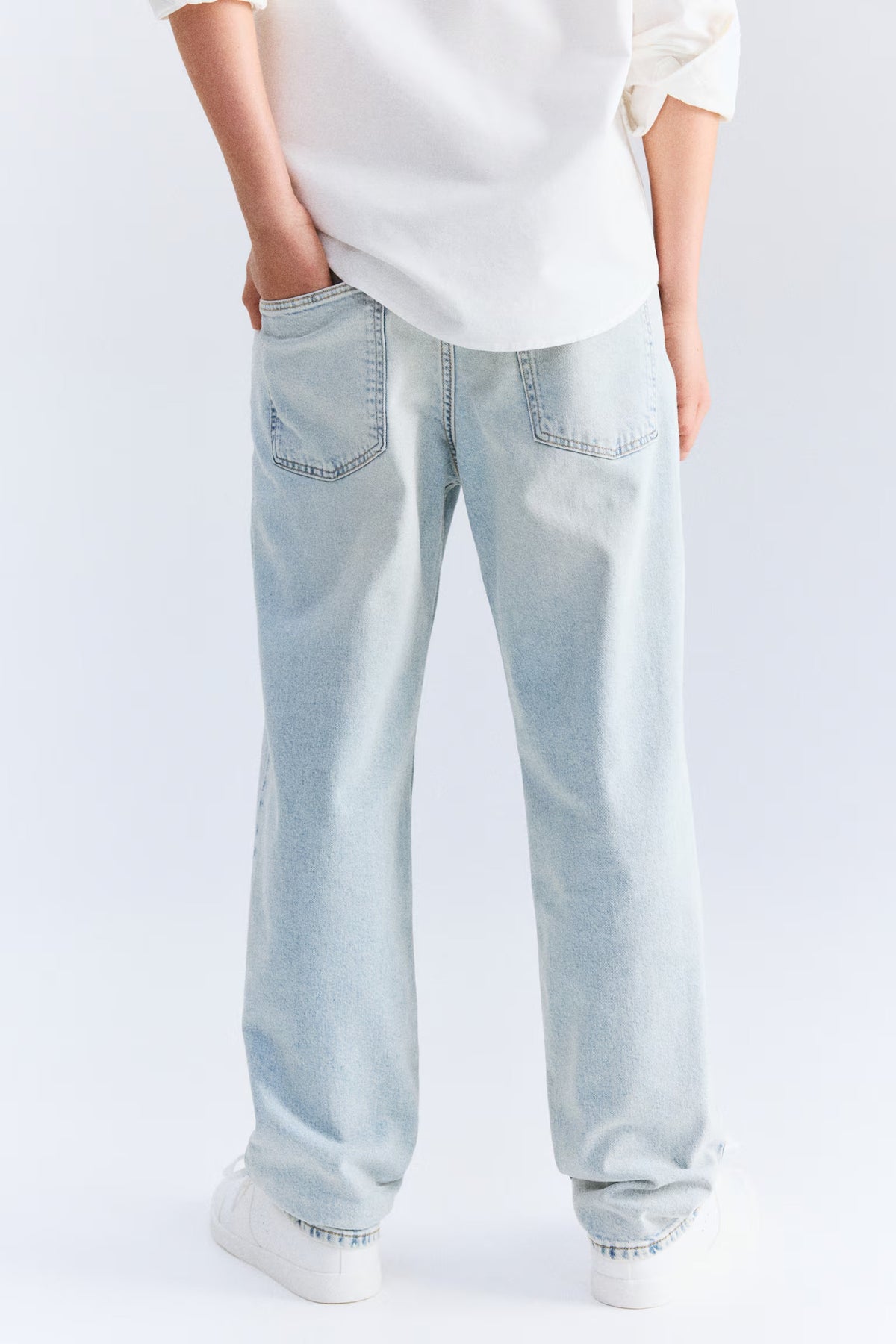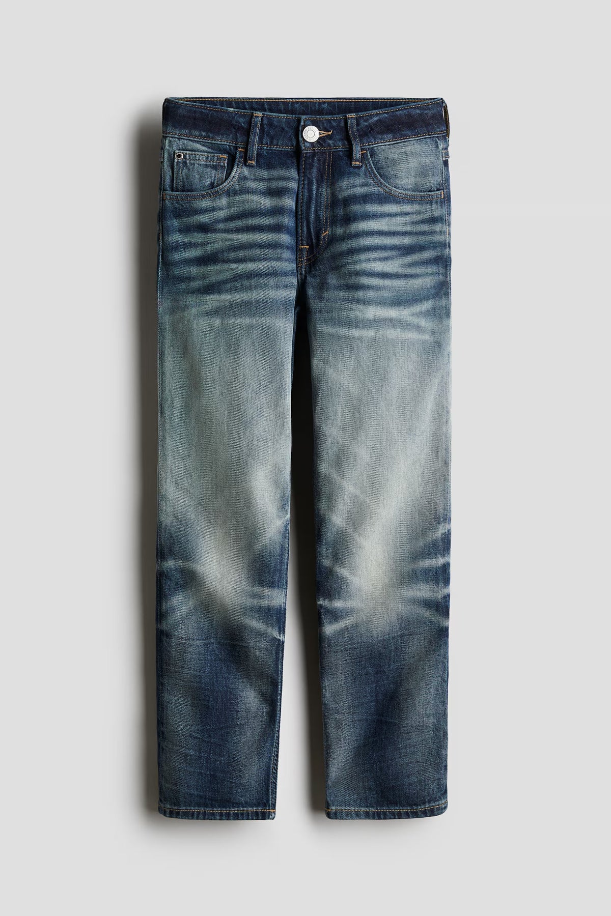 Relaxed-fit, 5-pocket jeans in flexible, washed stretch denim for added comfort. Adjustable elasticized waistband, zip fly with button, and tapered legs.