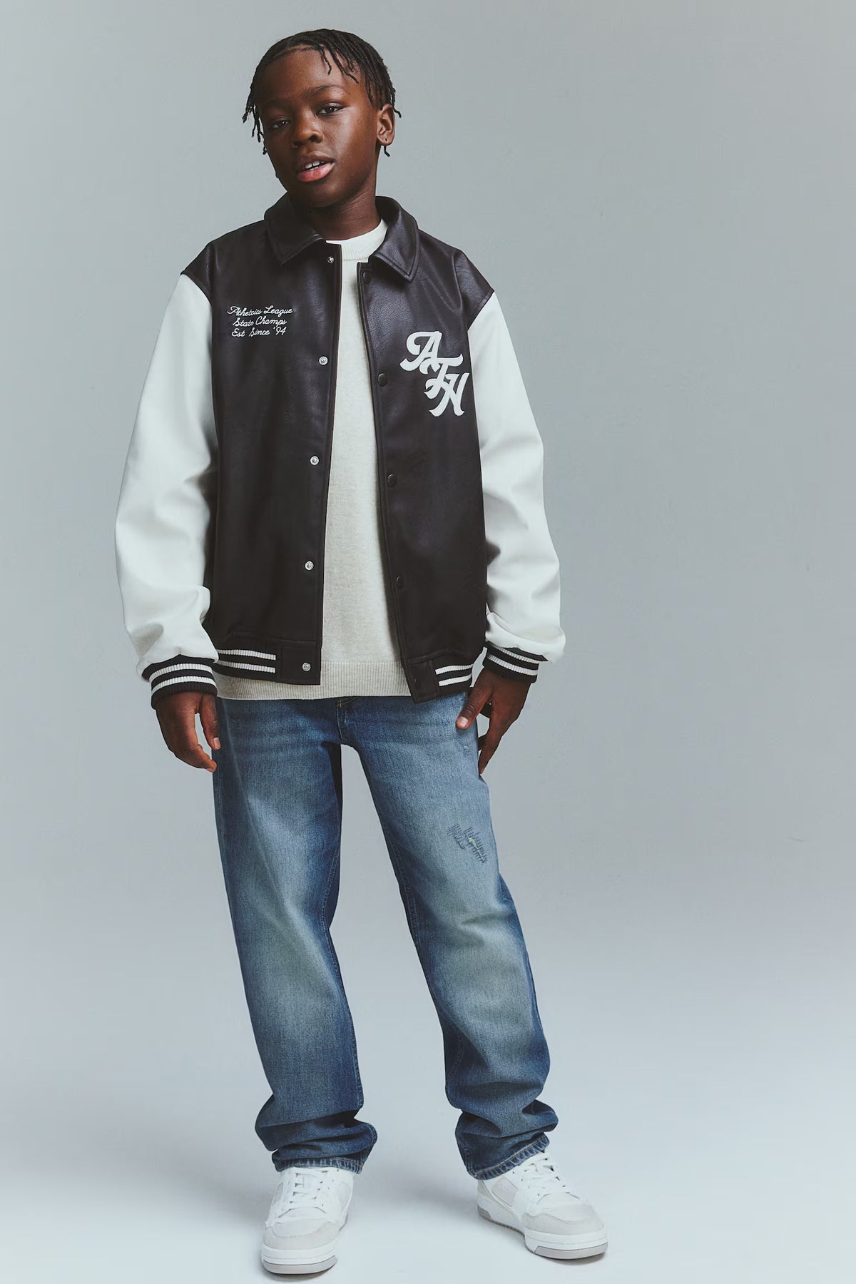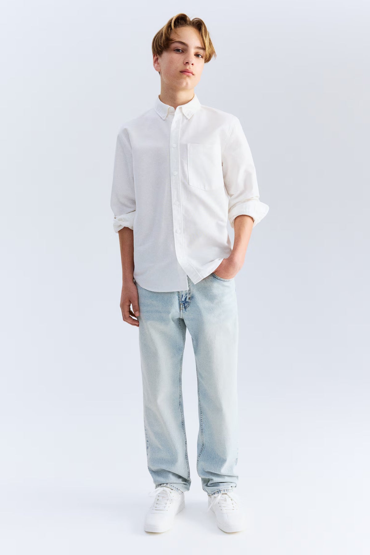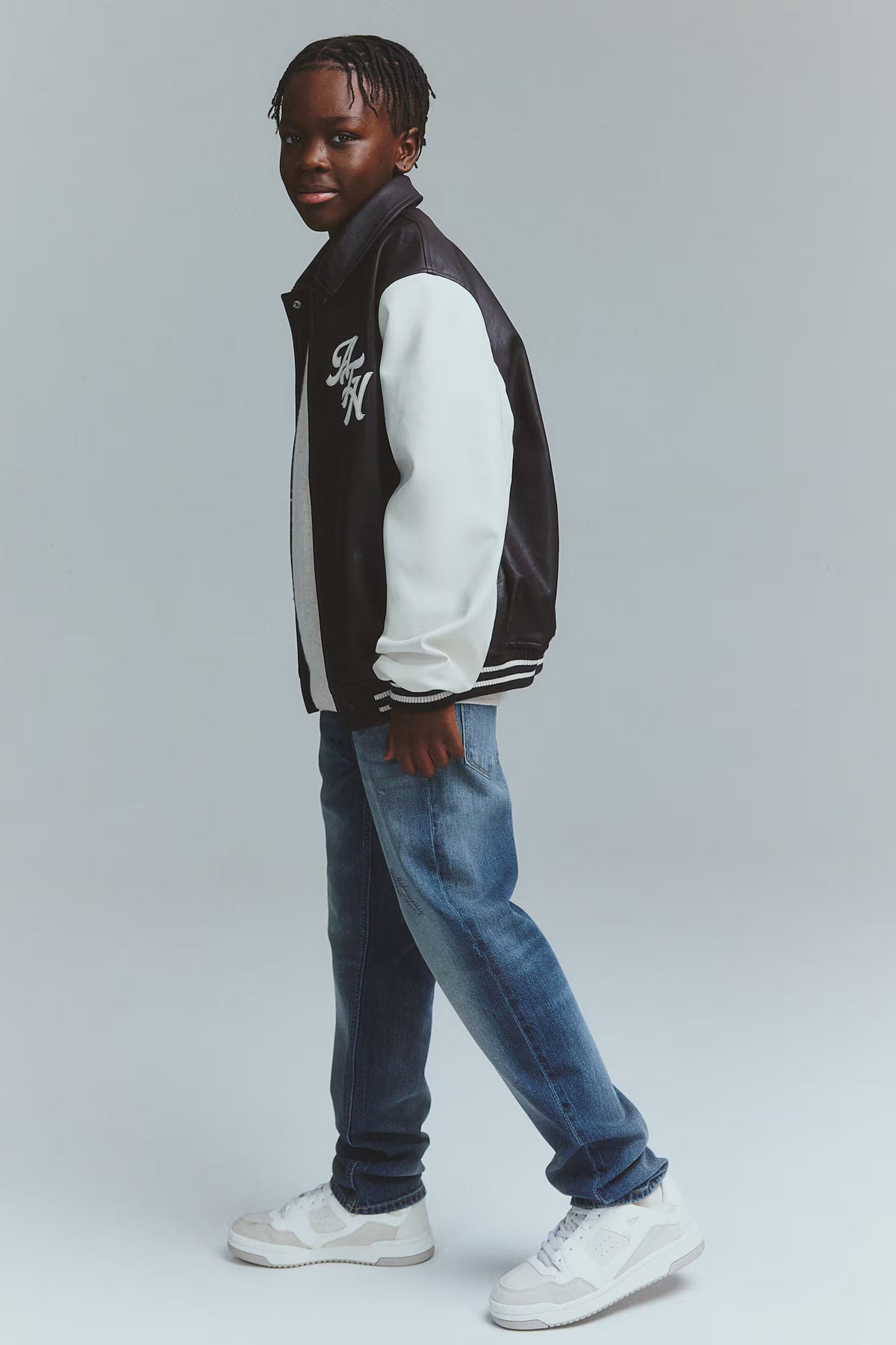 Relaxed-fit, 5-pocket jeans in flexible, washed stretch denim for added comfort. Adjustable elasticized waistband, zip fly with button, and tapered legs.