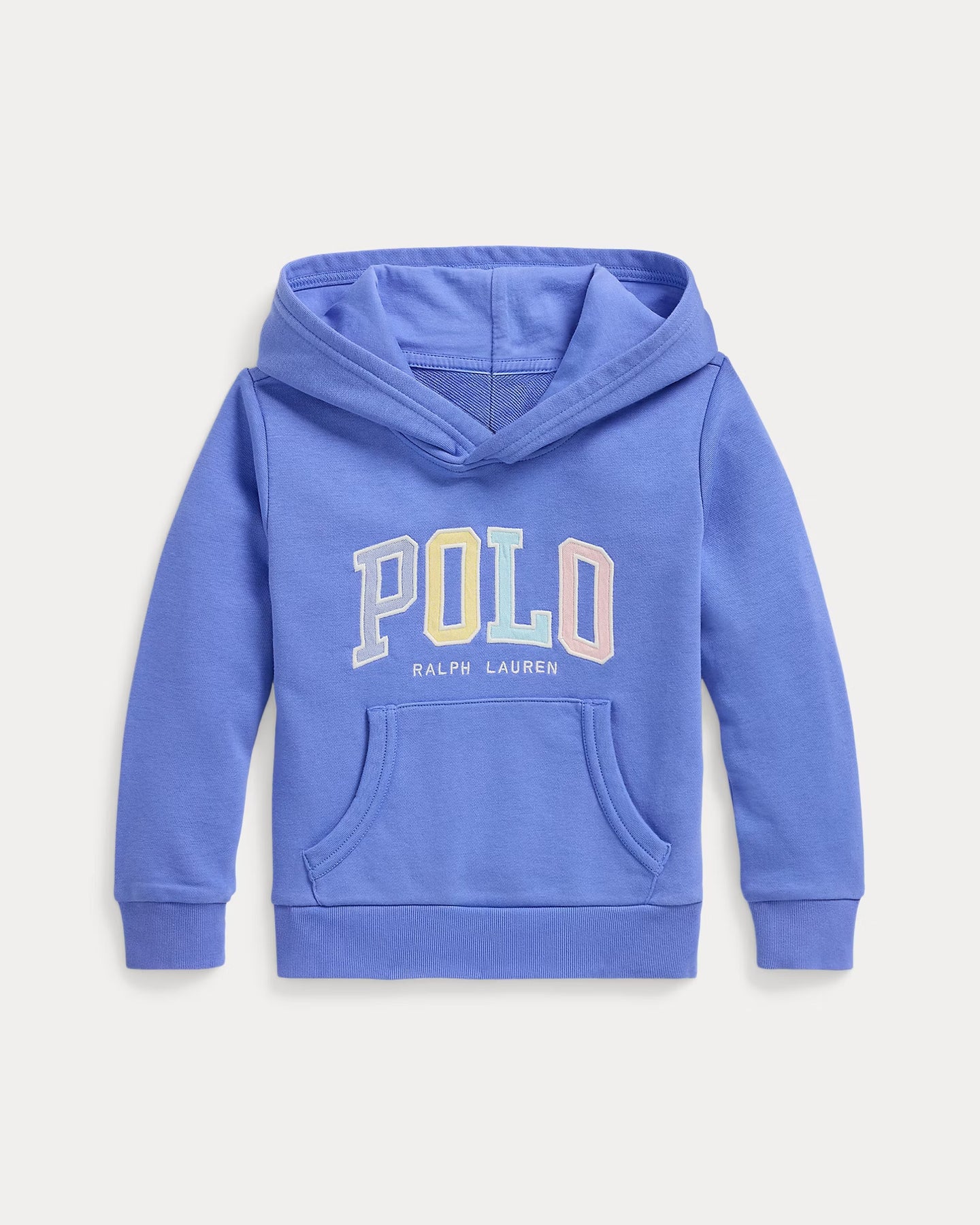 - Appliqués spelling out “Polo” and “Ralph Lauren” embroidery at the center front.