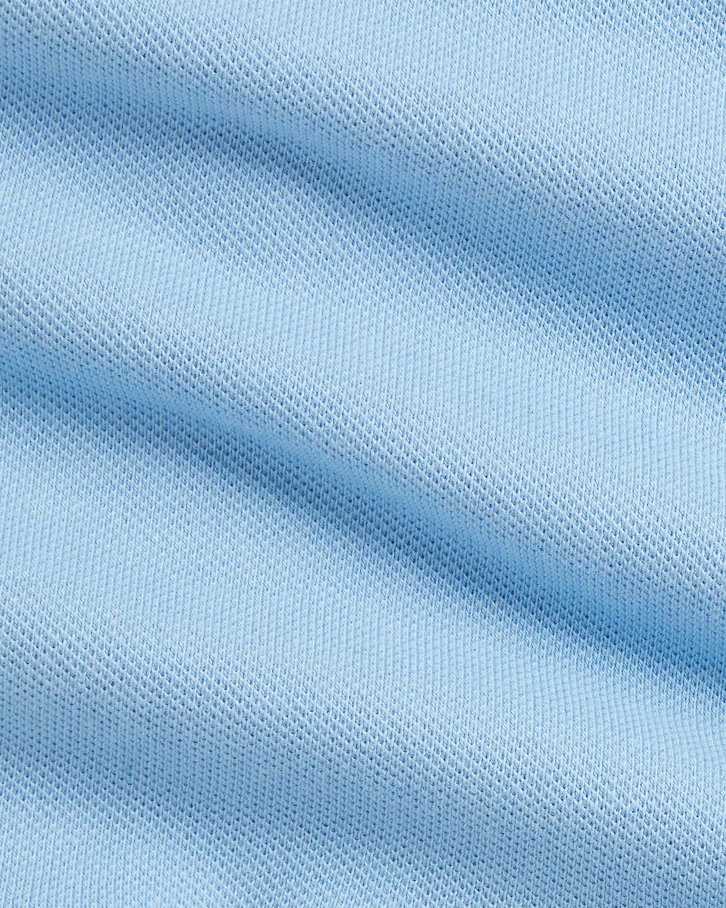 - Polo shirt: ribbed Polo collar; three-button placket; ribbed armholes; bunny and “Polo” embroidered at the left chest; peplum hem.