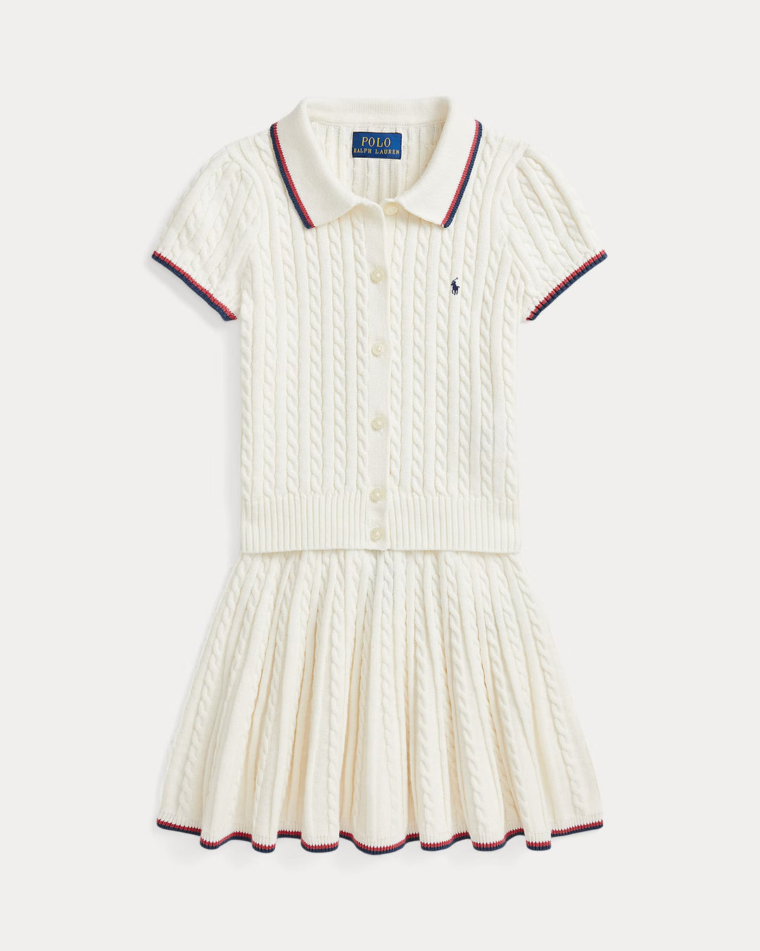 Ralph Lauren Mini-Cable Cotton Cardigan & Skirt Set