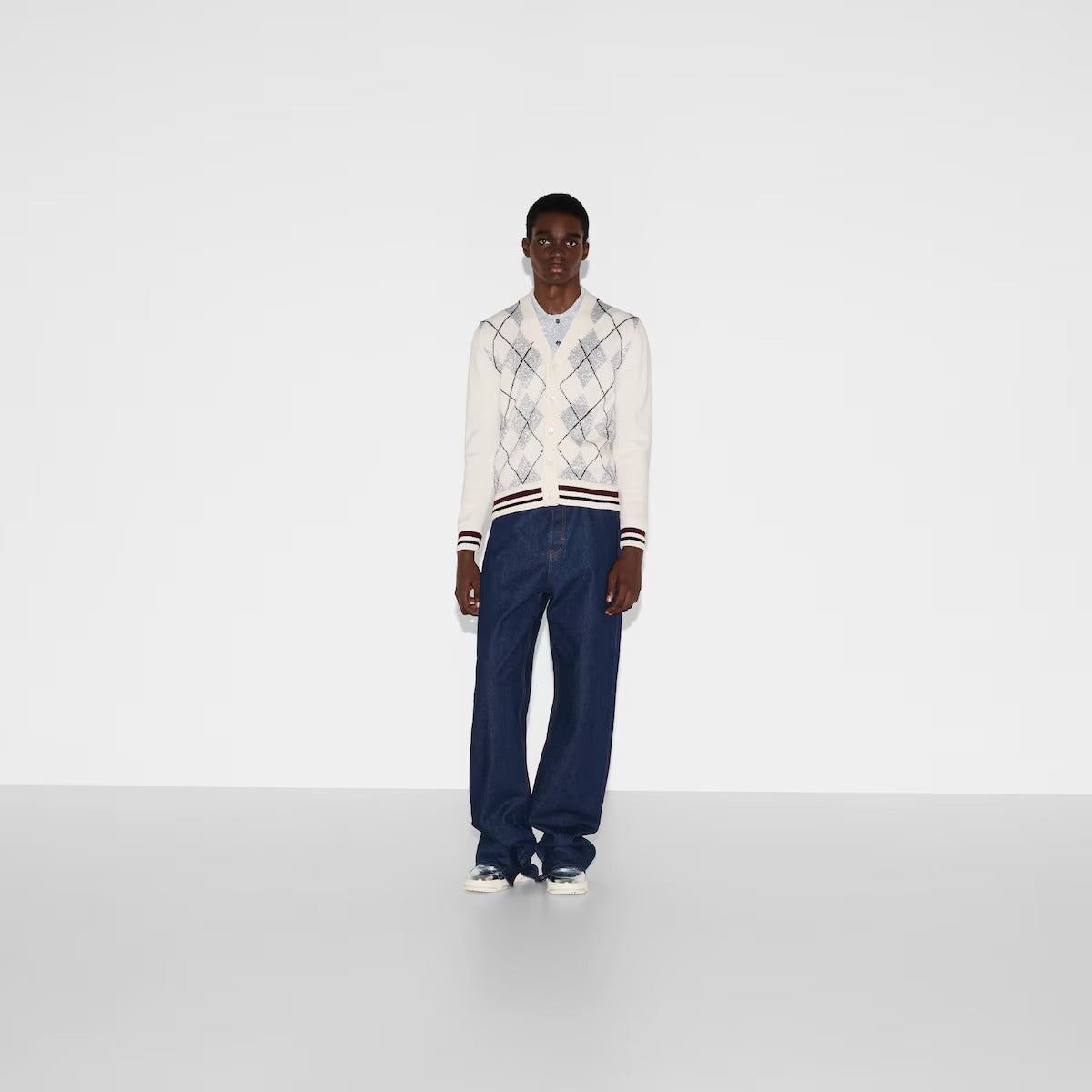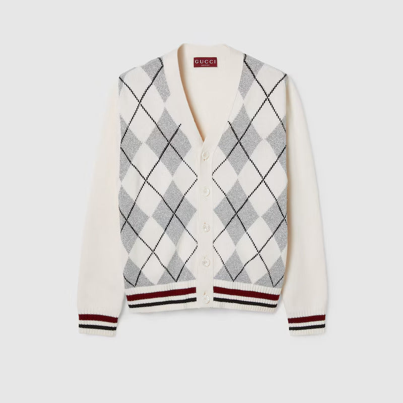 Gucci WOOL ARGYLE INTARSIA KNIT CARDIGAN