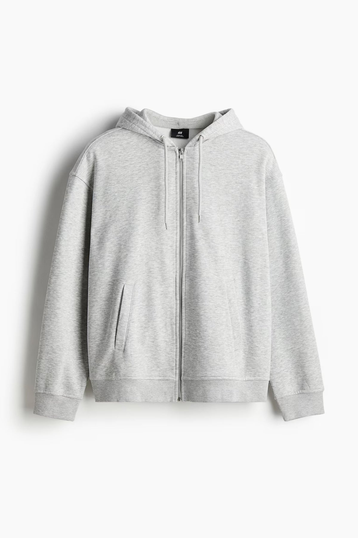 Loose-fit, hooded sweatshirt jacket in lightweight, cotton-blend fabric with a generous but not oversized silhouette. Jersey-lined, drawstring hood. Zipper at front, diagonal, welt side pockets, and wide ribbing at cuffs and hem. Soft, brushed inside.