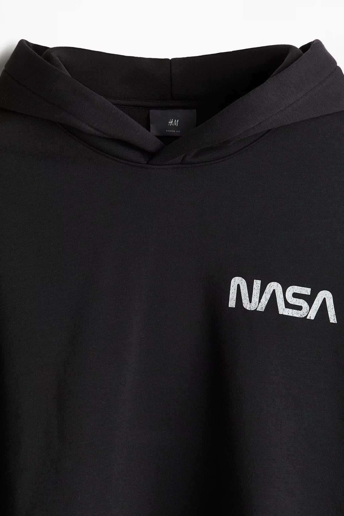 Loose-fit sweatshirt hoodie in medium-weight, cotton-blend fabric with a printed motif and generous, but not oversized silhouette. Lined wrapover hood, a kangaroo pocket, dropped shoulders, and long sleeves. Ribbing at cuffs and hem. Soft, brushed inside.