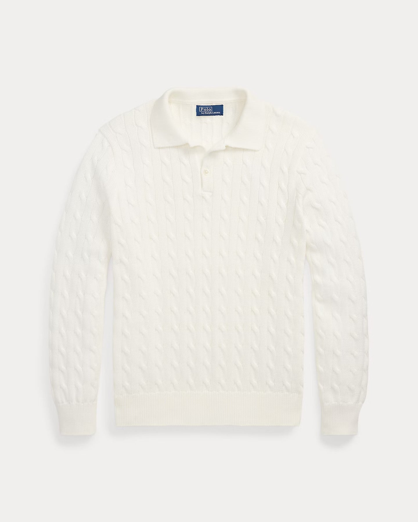Ralph Lauren Cable-Knit Cotton Polo-Collar Sweater