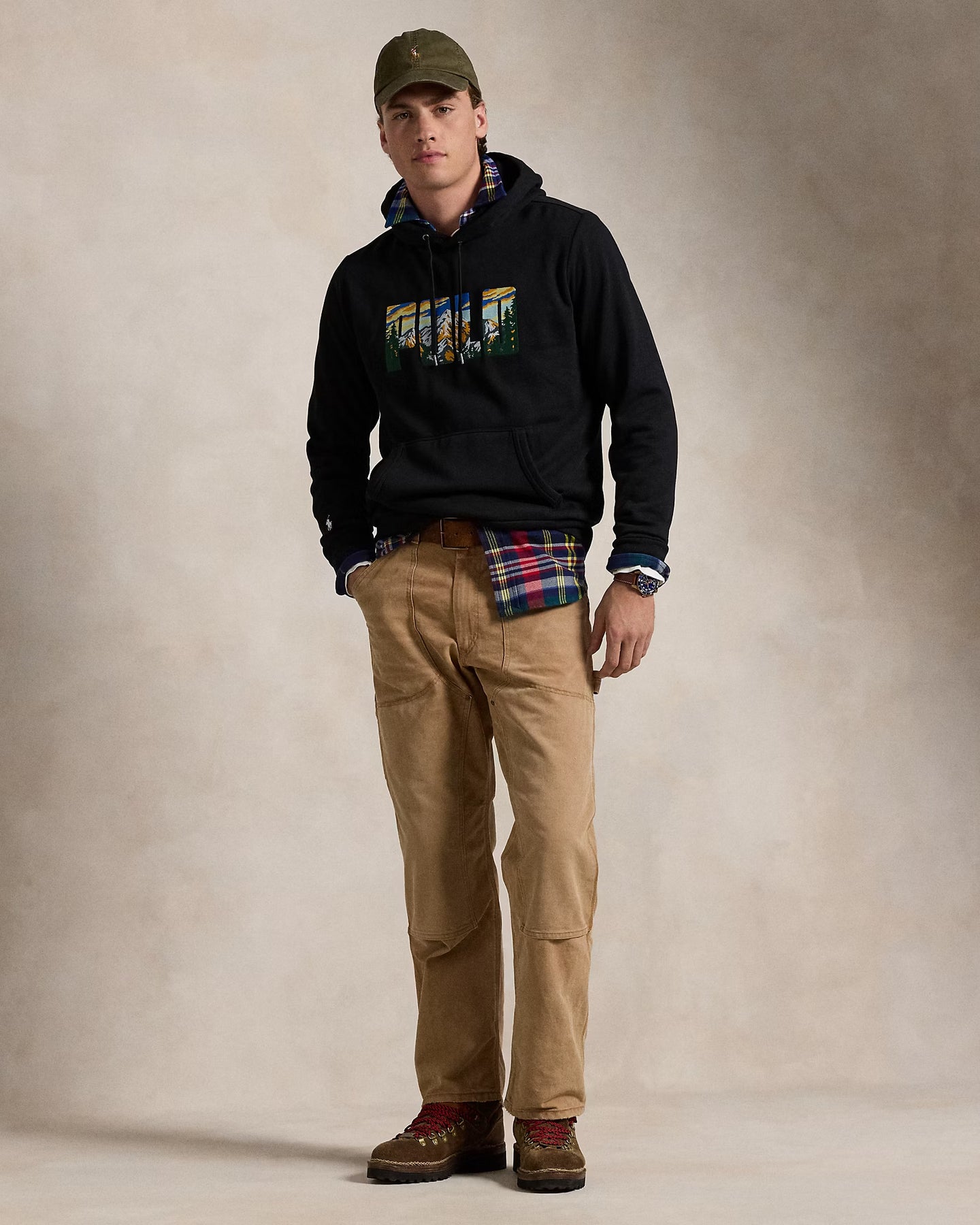 - Drawstring hood. Long sleeves with ribbed cuffs.