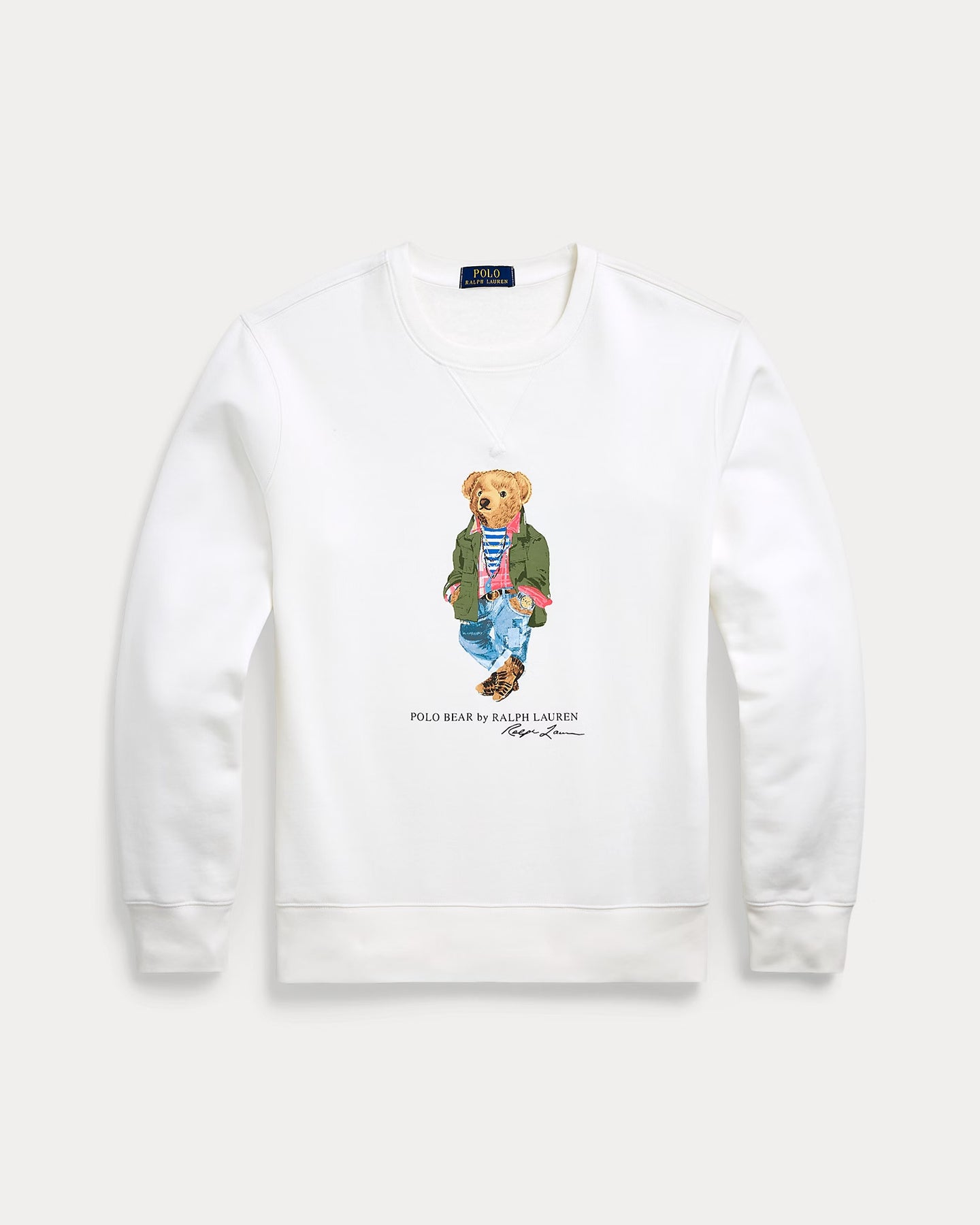 - Polo Bear, “Polo Bear by Ralph Lauren,” and “Ralph Lauren” script printed at the center front.