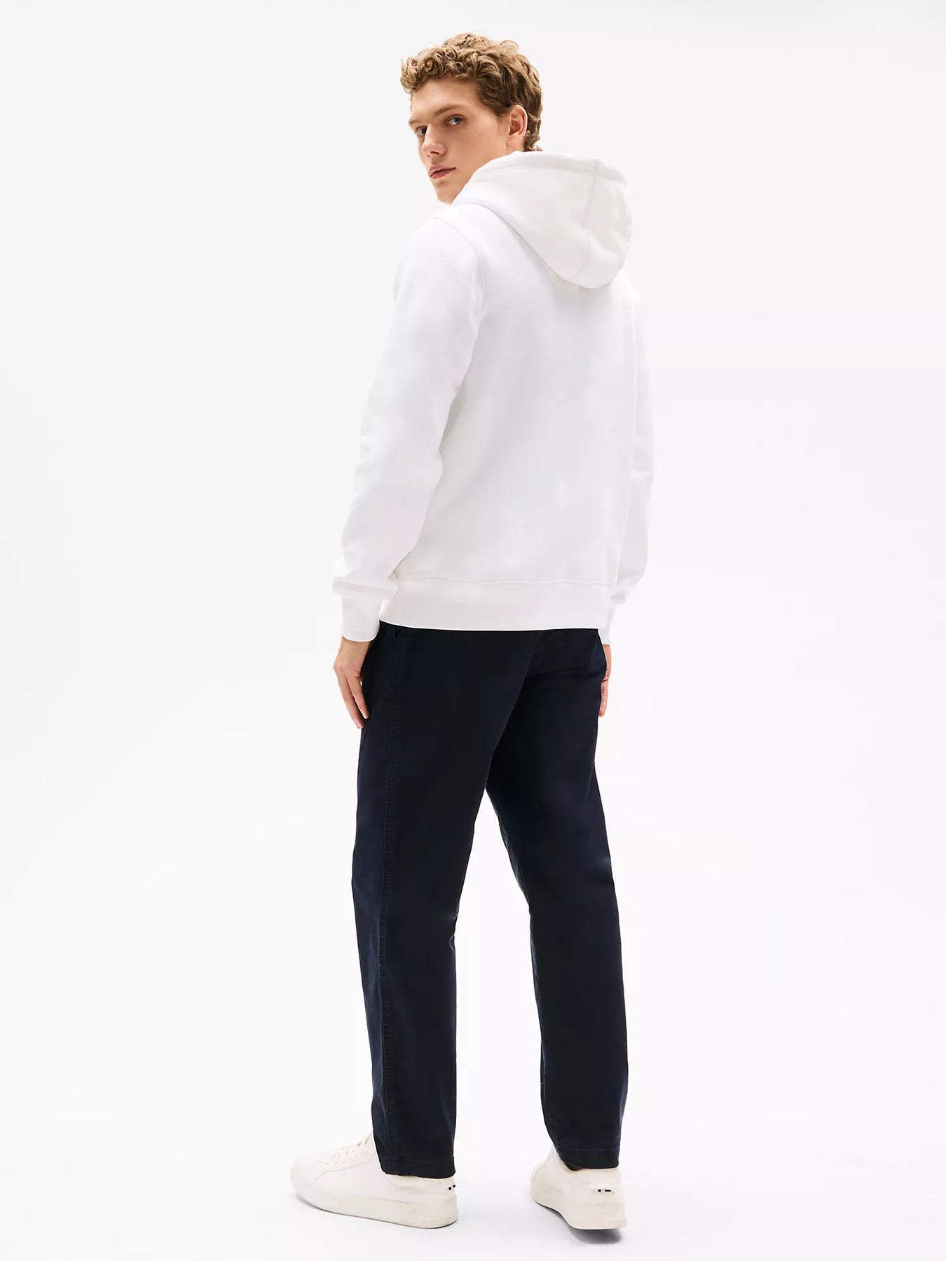 Tommy Hilfiger men's hoodie. Our seriously soft hoodie is made from brushed-back fleece with a flat, clean face and smooth feel. Complete with a drawstring hood, rib-knit cuffs and hem, and our embroidered Tommy Logo at the chest.