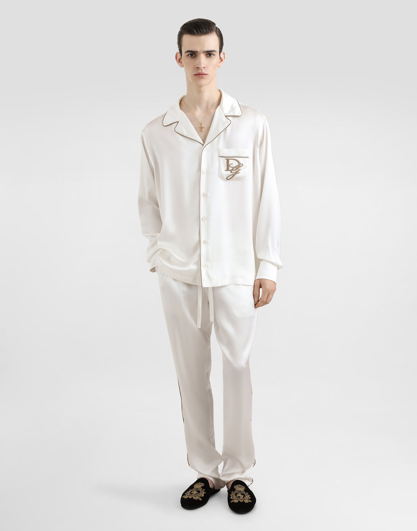 Silk twill vanity shirt with DG logo embroidery:
