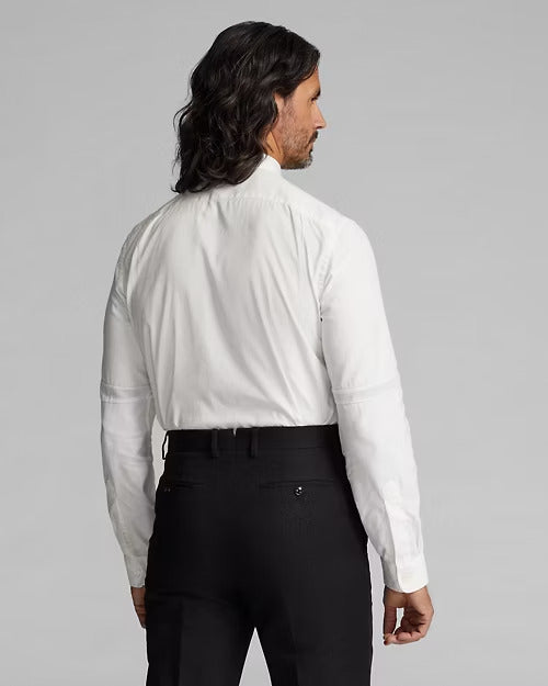 - Long sleeves with buttoned barrel cuffs.