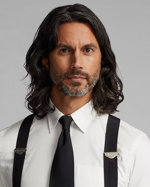 - Model is 6'1" (185 cm) and wears a size 15.5.