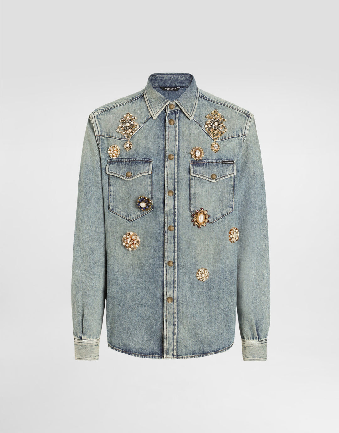 Dolce&Gabbana Denim shirt with bejeweled appliqués