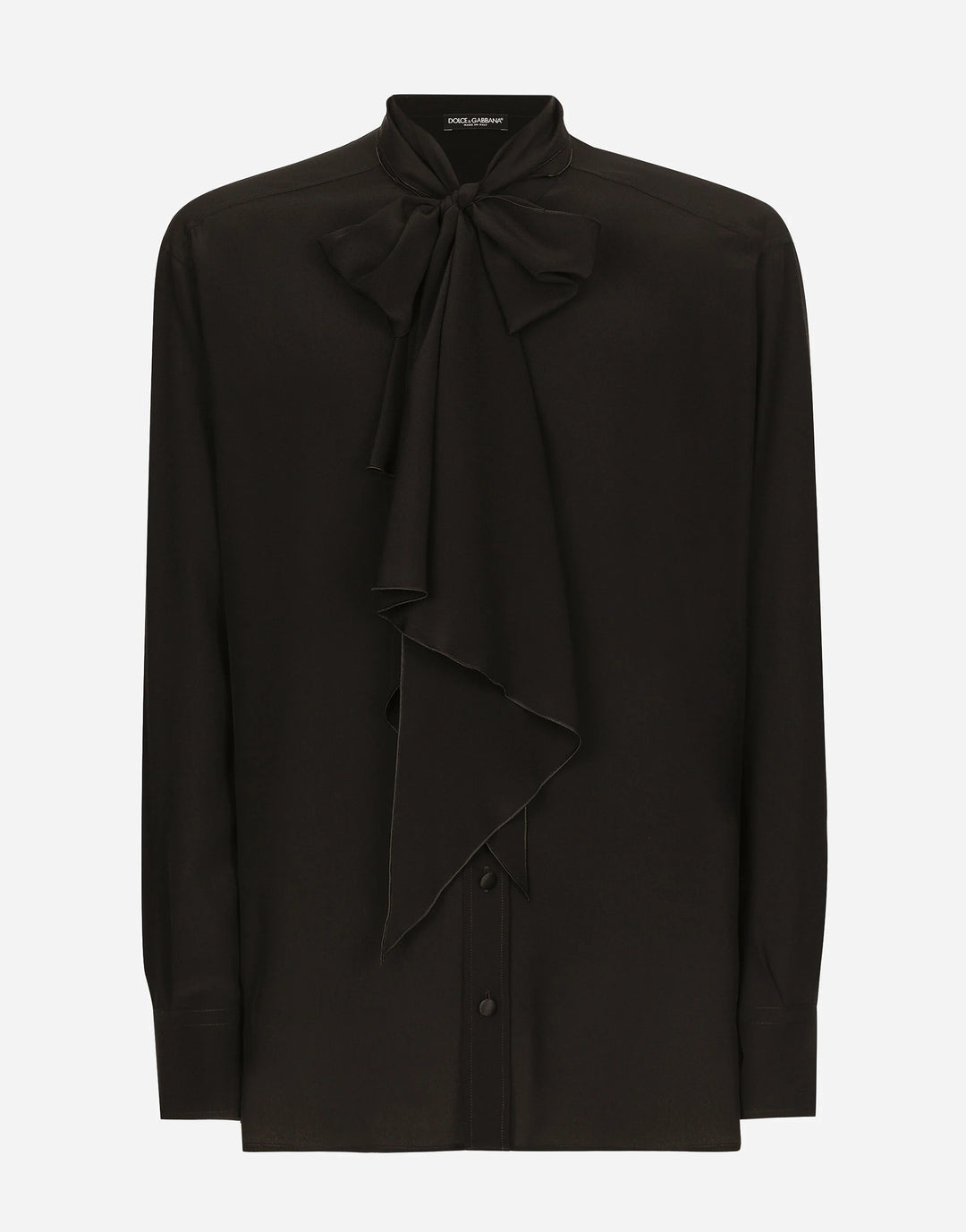 Dolce&Gabbana Oversize silk shirt with pussy-bow
