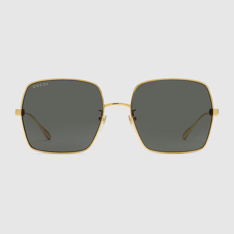Part of the Pre-Fall 2023, these sunglasses are defined by a 1970s square frame construction. Crafted from gold-toned metal, a Gucci lettering appears along the temples, completing the style with a distinct logo feel.