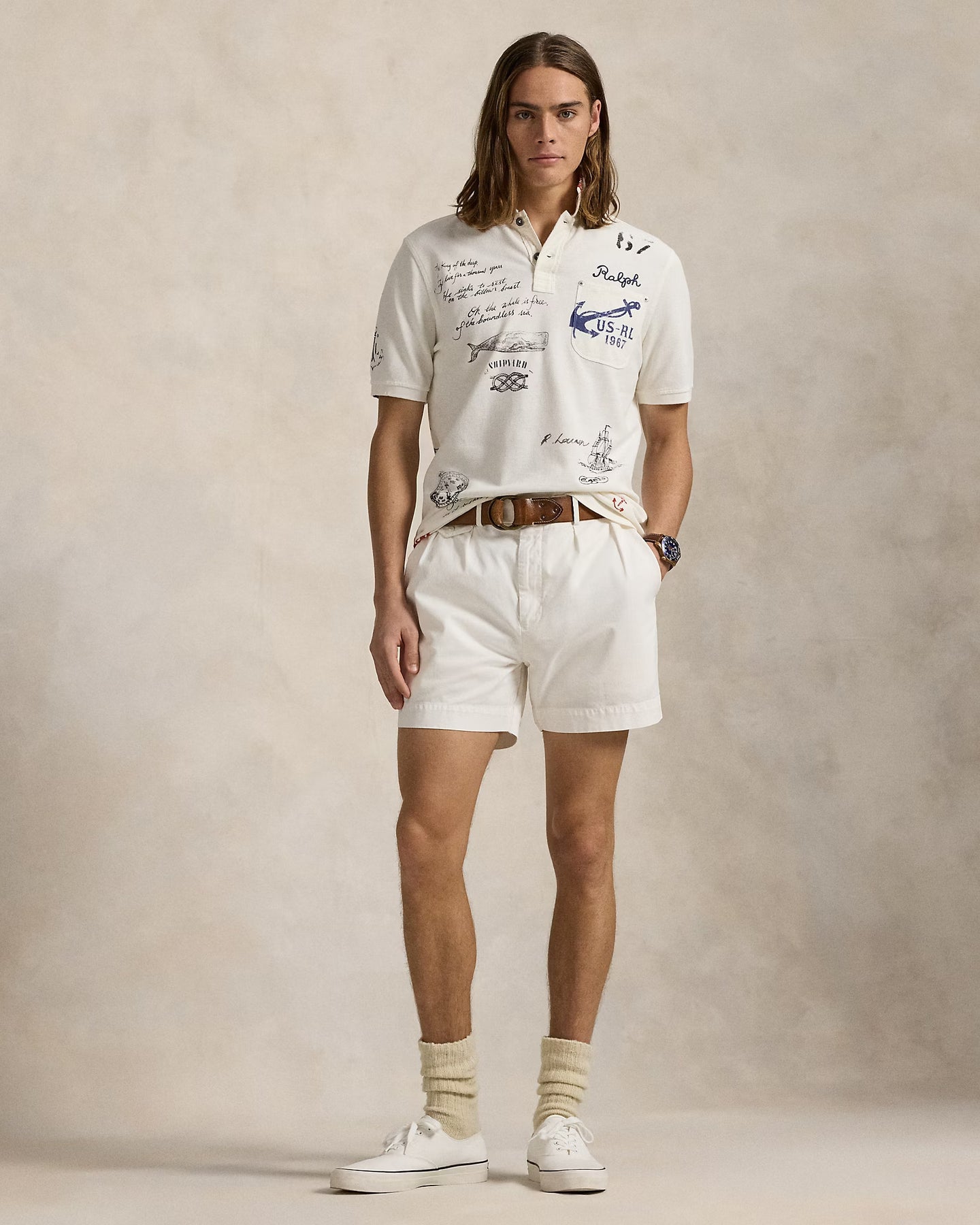 - Left chest patch pocket with signature metal rivets. “US-RL 1967” and an anchor printed at the pocket. Chain-stitched “Ralph” embroidery above the pocket.