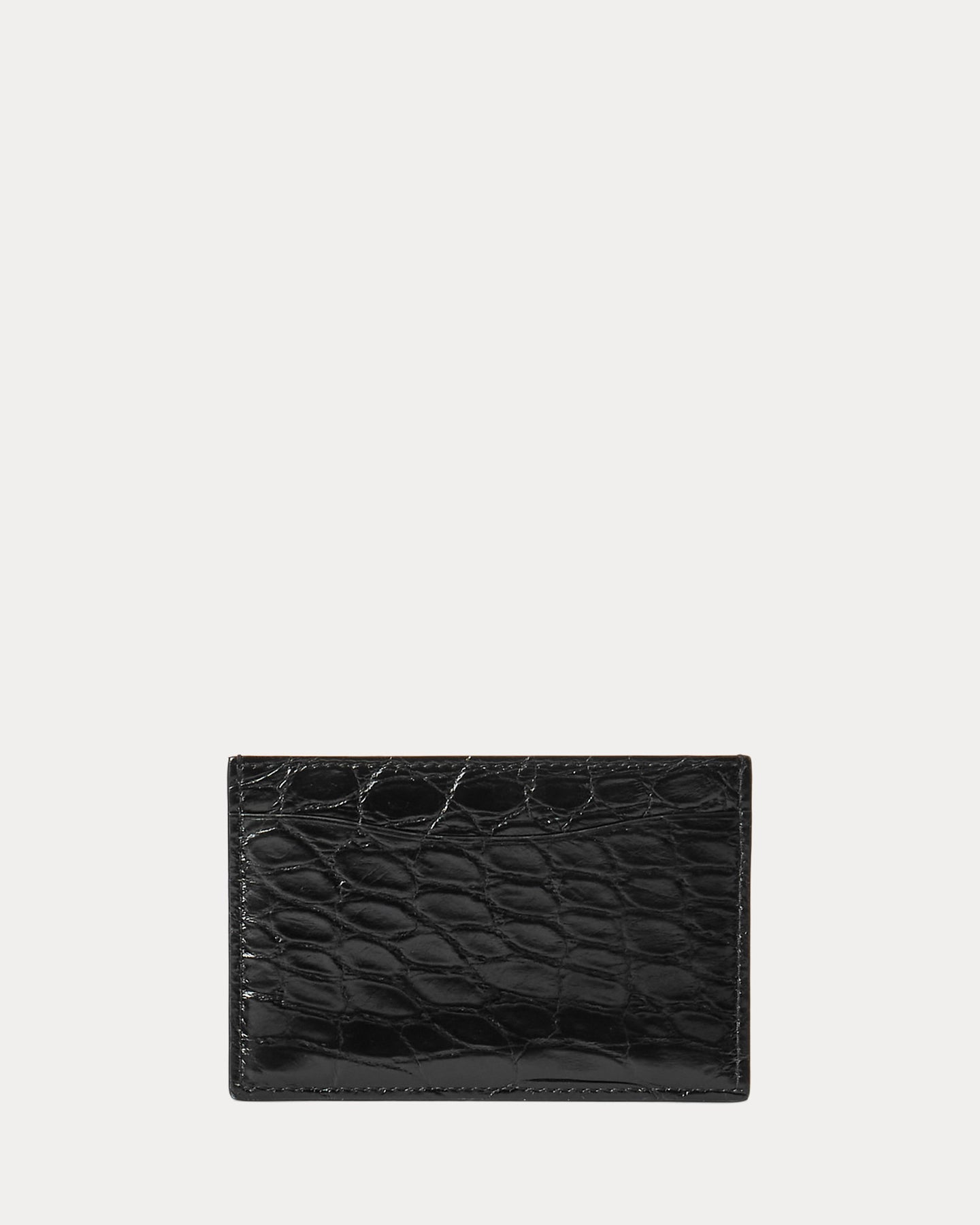 - Shell: alligator. Lining: leather. Card slot lining: viscose.