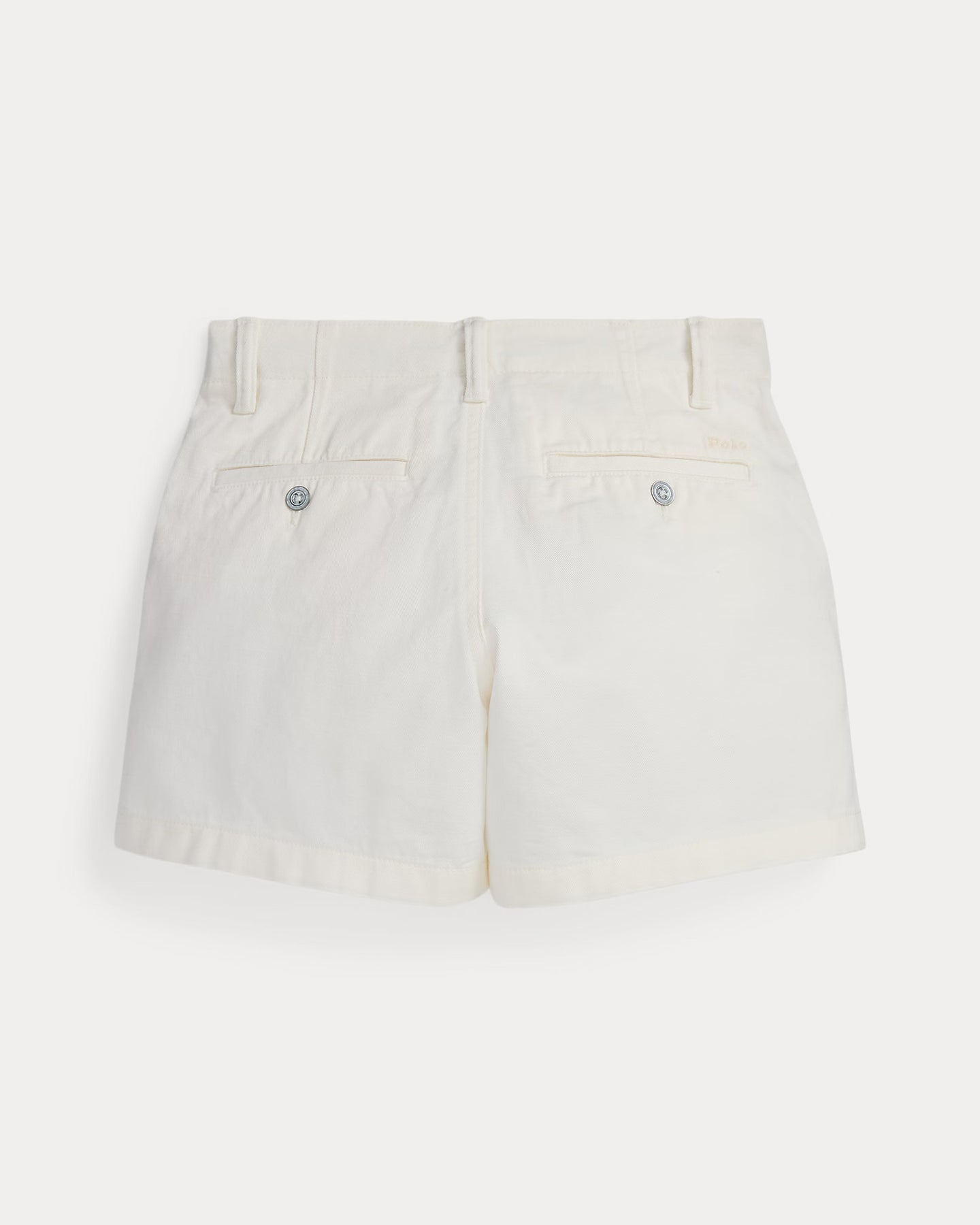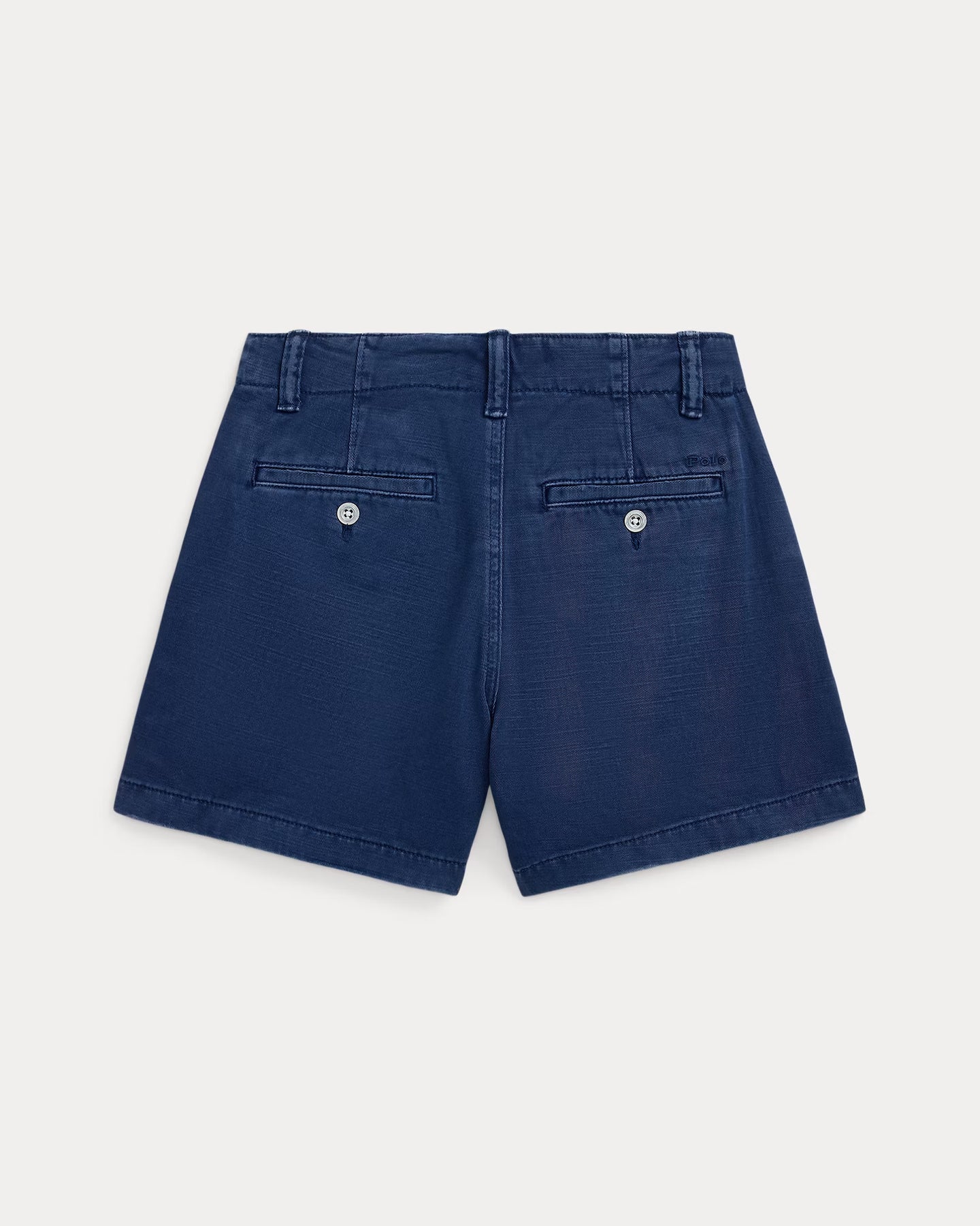 - Two front angled pockets. Two back buttoned pockets. "Polo" embroidered above the back right pocket.