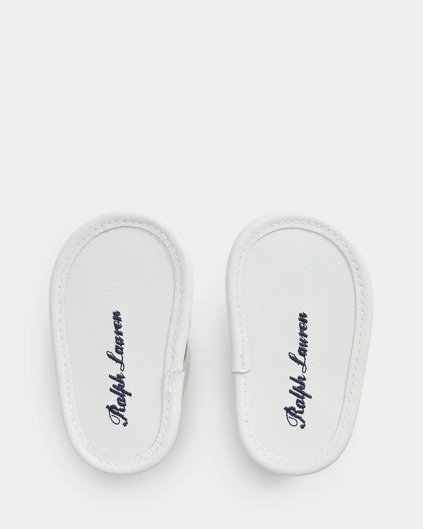 - Soft leather outsole embroidered with “Ralph Lauren” script.