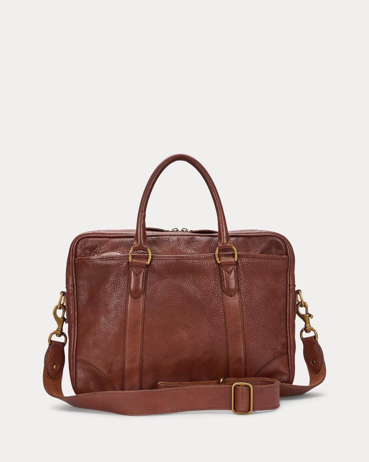 • Two leather top handles, each with a 4" drop. Removable, adjustable leather shoulder strap.