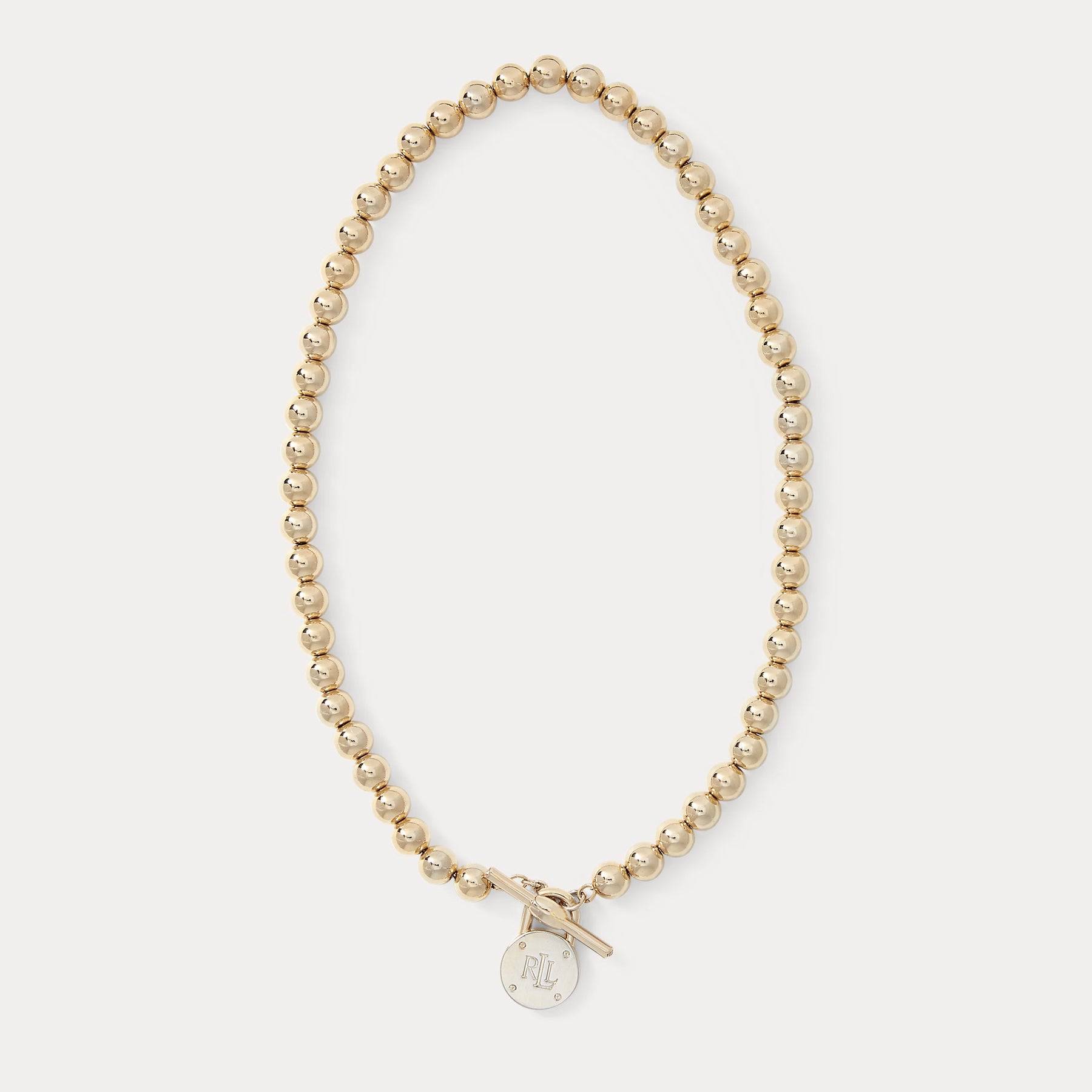 Lustrous beads are finished with a toggle closure and an “LRL“-engraved pendant for signature Lauren style.