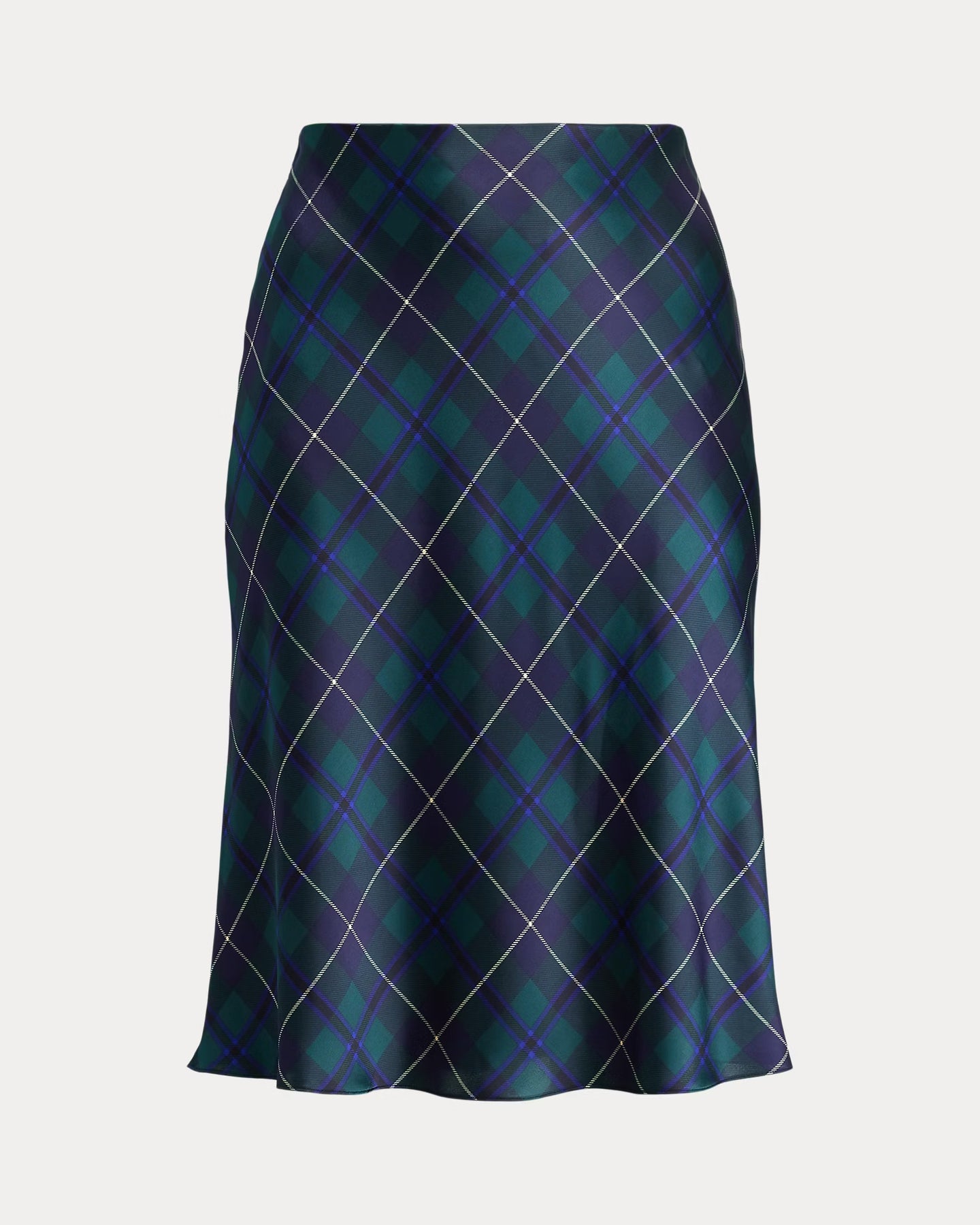 Ralph Lauren Plaid Satin Charmeuse Midi Skirt